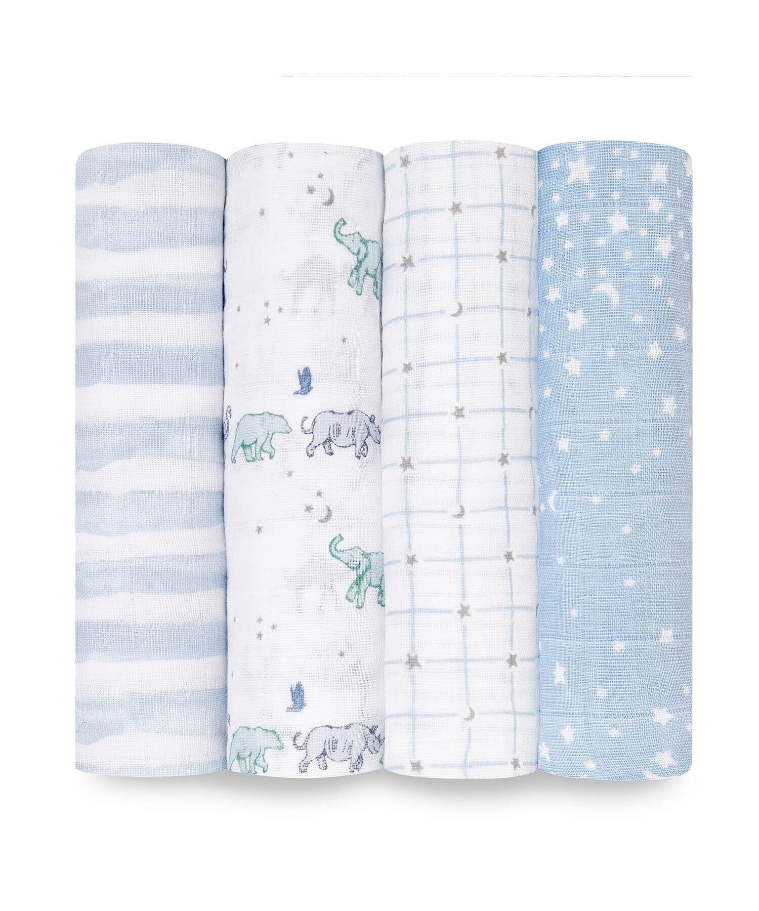 aden + anais エイデンアンドアネイ おくるみ スター 4枚セット 120×120cm モスリンコットン スワドル 新生児 出産祝い SWADABASWC40006J