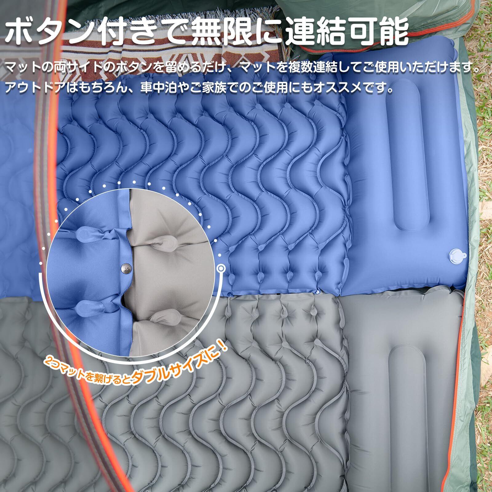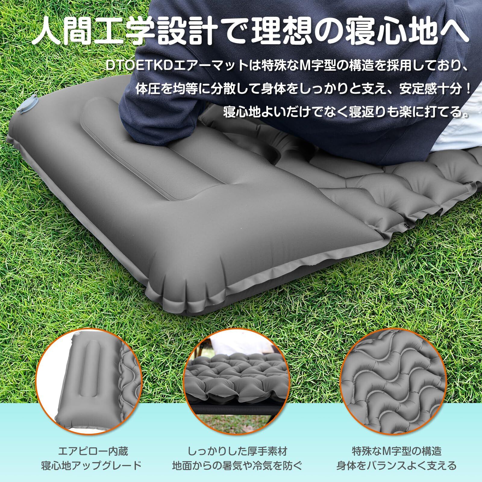 DTOETKD エアーマット キャンプ マット 【寝心地良い・軽量コンパクト】 枕付き エアマット 無限連結可能 防水防潮 車中泊マット 足踏み式 キャンプマット アウトドアマット ダブル シングル 来客用 キャンプ用マット 折り畳み式 持ち運び便利 日本語取扱書・収納袋付き 収納簡単
