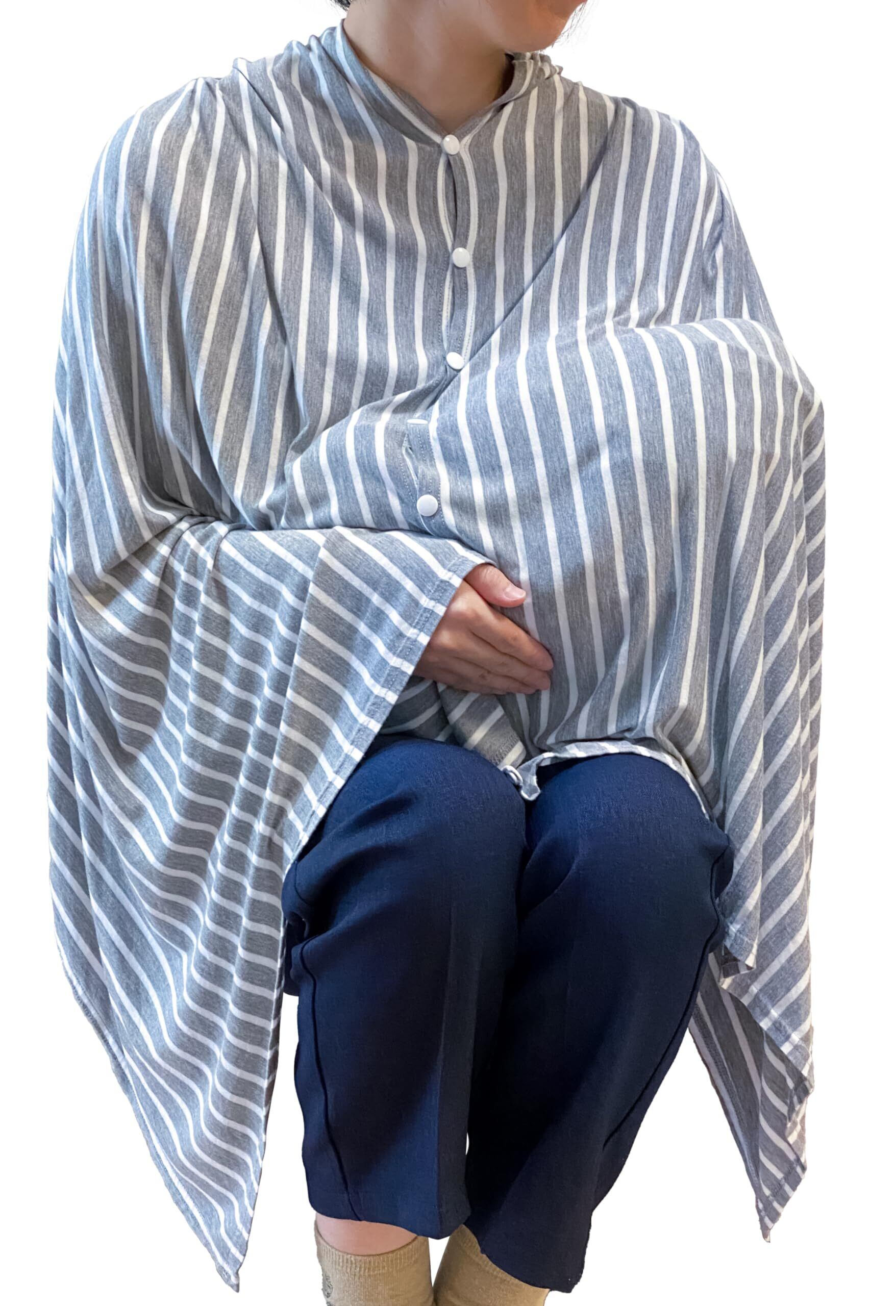 [Pharmee] 授乳ケープ 【現役ママ推薦】 大判 360度安心 多機能 伸縮性 ポンチョ ストール コットン ボタン付き マタニティ (グレー/ホワイト)