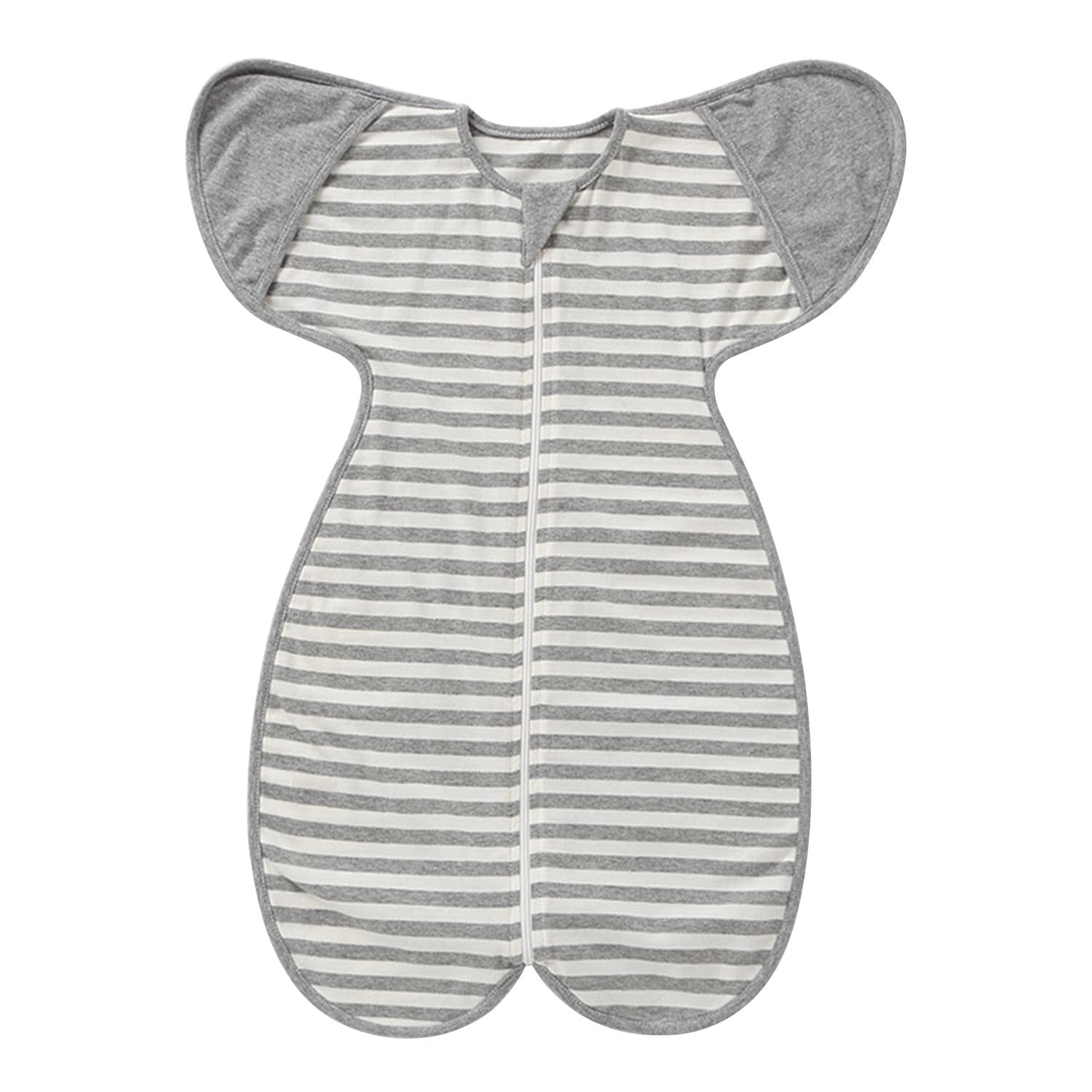 おくるみ 新生児 夏 綿 ベビー 夜泣き対策 出産祝い ベビー服 手が出せるタイプ 着脱簡単 柔らかく モロー反射防止 通気性 伸縮性 プレゼント(ストライプグレー, M)