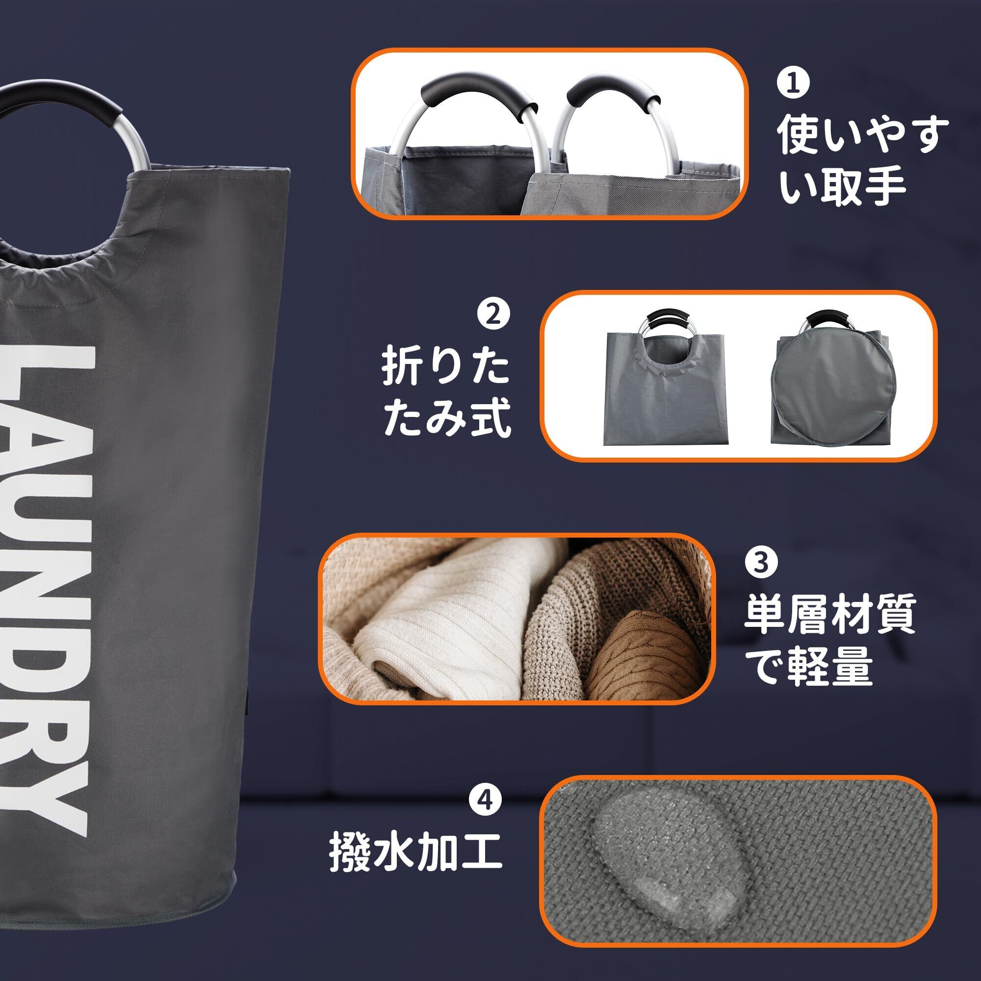 【収納簡単・持ち運び便利】使用しない時は、折りたためる洗濯かごをコンパクトに収納できます。アルミハンドルには軟らかいEVA素材を塗りつけたので、重量物に対応できるだけではなく、使用中はお手も快適にします。