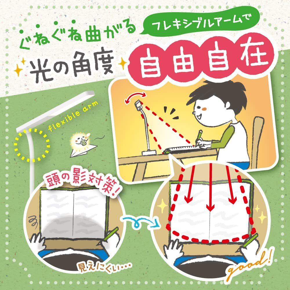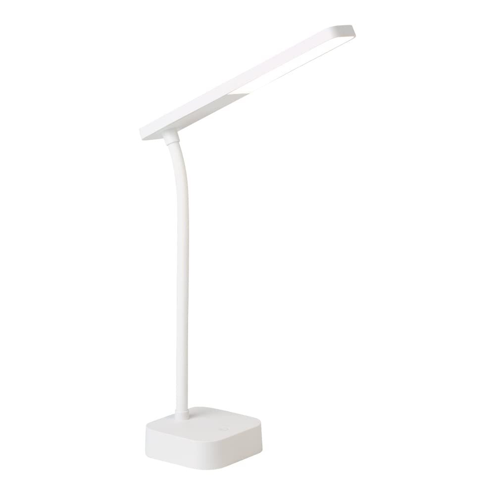 コンセントがない場所でも使えるUSB充電式。連続点灯時間 約5.5時間(MAX点灯時)コードレスだから、お掃除スムーズ&足ひっかける心配なし! コンパクトだから、サッと持ち運べる&収納時もすっきり省スペース! スイッチひとつで無段階調光! 長押しするだけでお好みの明るさに調整できます。頭の影対策! ぐねぐね曲がるフレキシブルアームで光の角度も自由自在に調整。太陽光に近い昼白色は、目にやさしい&集中力もアップ! 最大照度 約750lx(直下25cm)光源寿命 約30,000時間充電時間 約3~4時間(使用環境により異なります/専用USBケーブル付) 光源 LED20個商品名:ソニック スリムLEDデスクライト USB充電式 リビガク ホワイト LV-5765-W