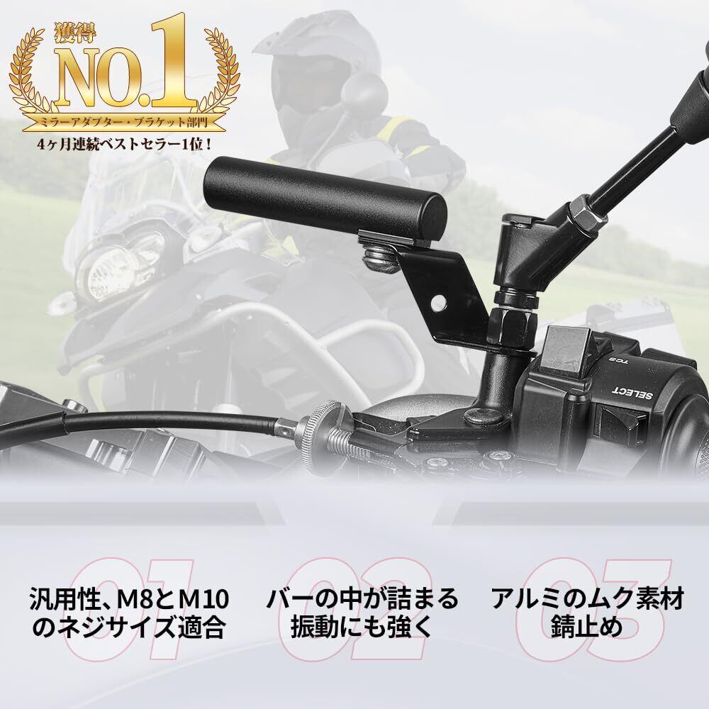 取り付け簡単:ミラーを外して共締めするだけの簡単に取り付けます。様々なマウント部品を取り付けられます。通勤、週末ツーリングなど大活躍!