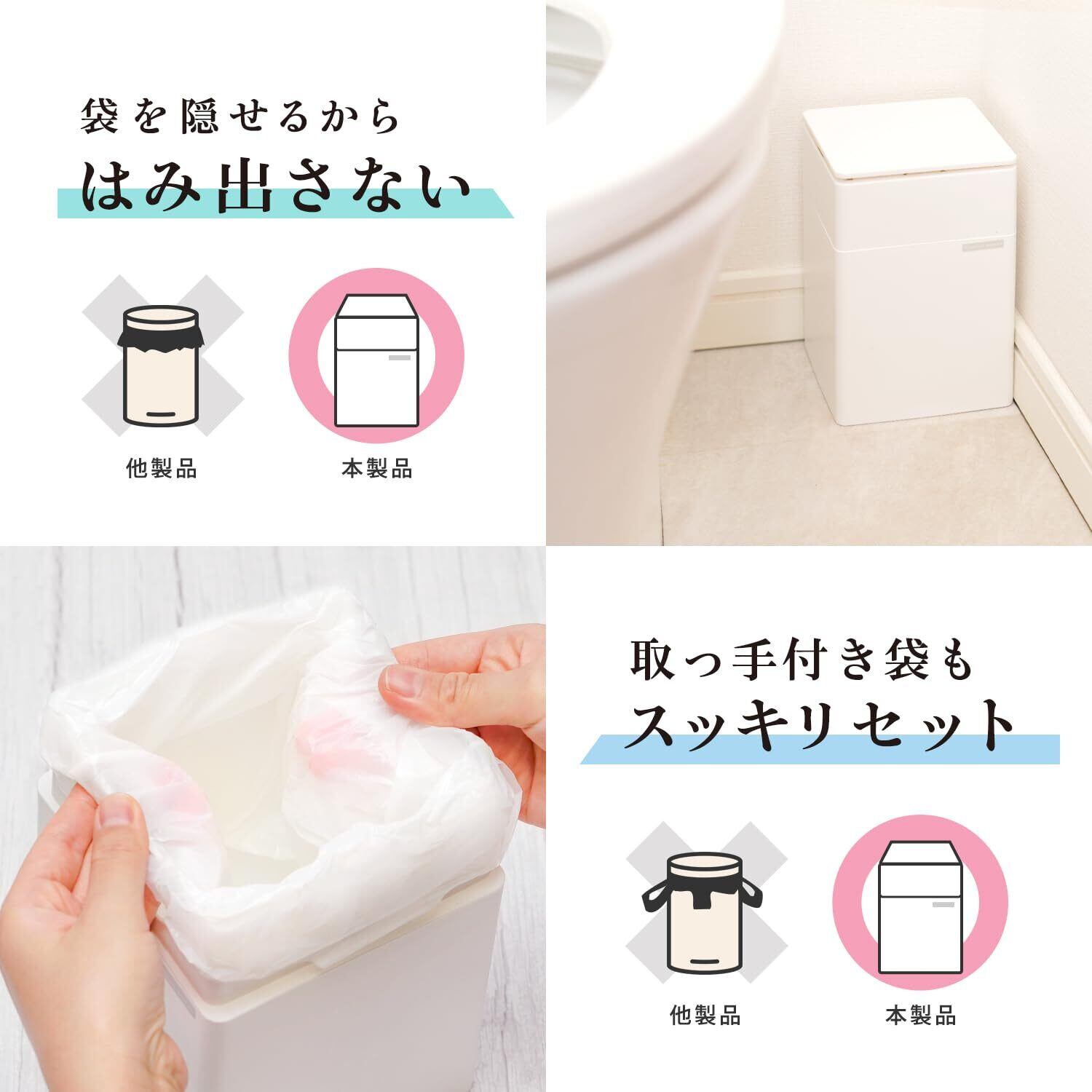 取っ手付きの袋もスッキリ取り付けられます。