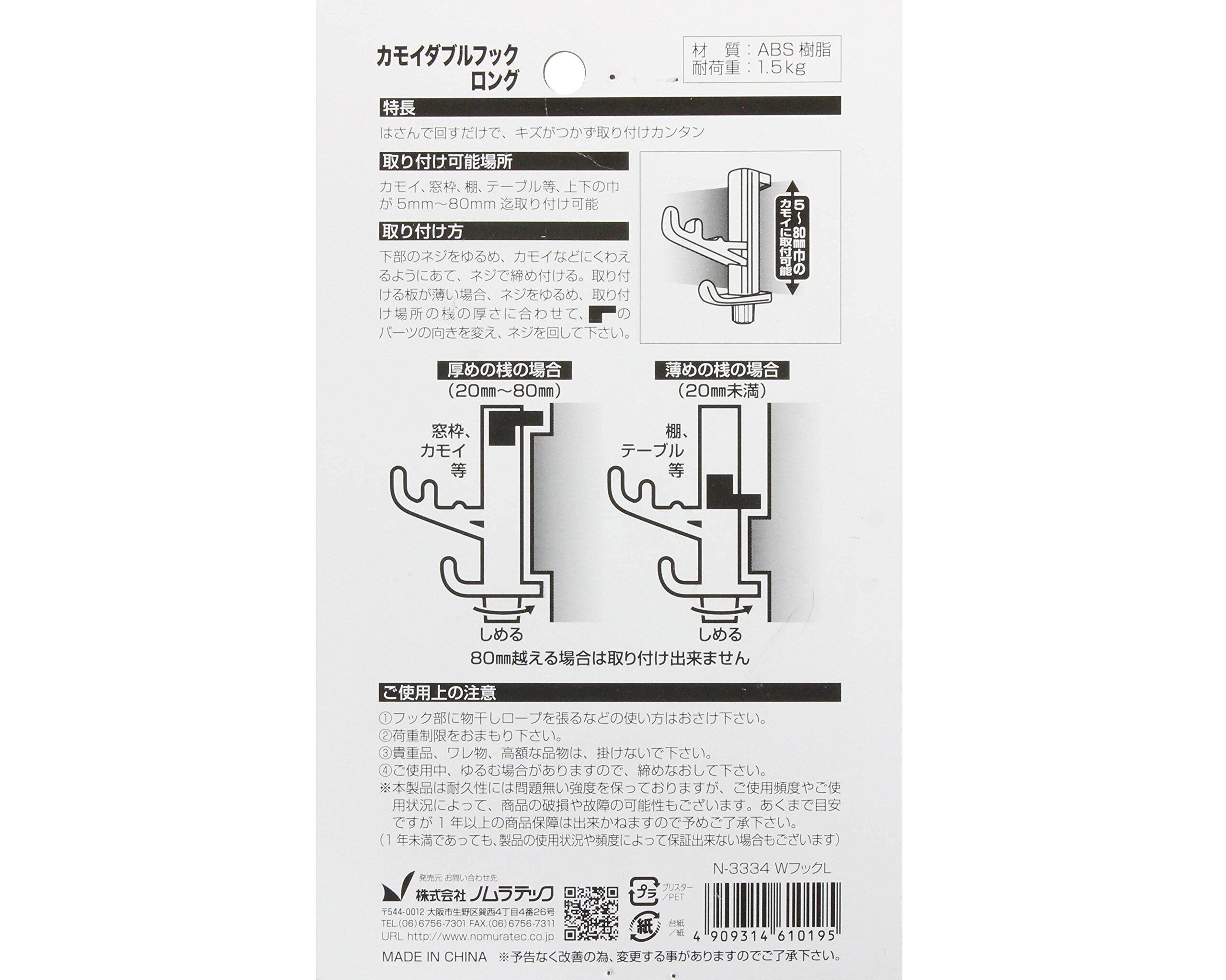 ノムラテック カモイダブルフック ロング (幅5~80mm対応) N-3334