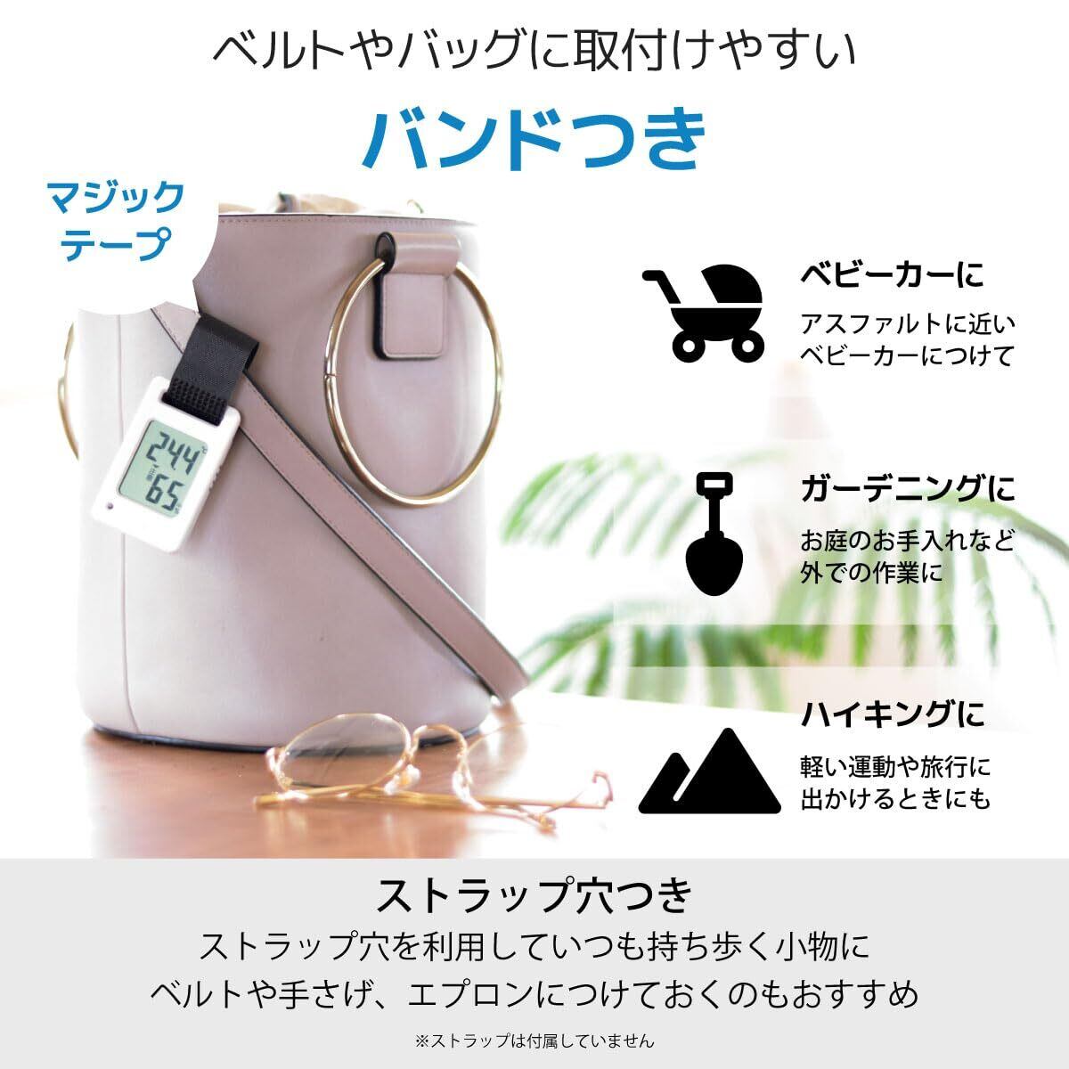 オーム(OHM) 電機 温湿度計 ミニ ポータブル デジタル バンド付き 熱中症予防 赤ランプ点滅 高温警告 注意マーク表示 ホワイト TEM-801-W 08-1452