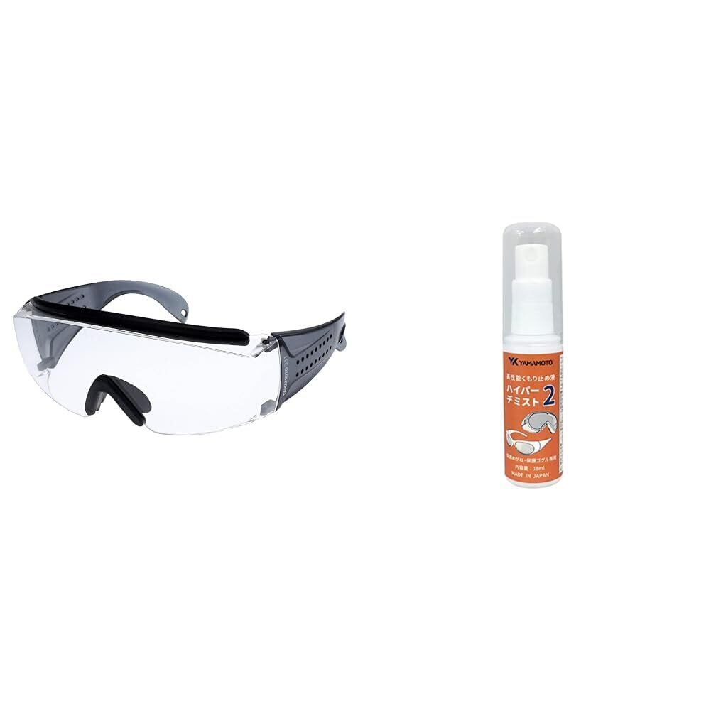 [山本光学] くもり止めスプレーセット YAMAMOTO NO.331 オーバーグラスタイプ保護めがね 上部クッションバー&ノーズパッド付き 大型眼鏡併用可 ワイドテンプル グレー PET(両面ハードコート) 日本製 JIS 紫外線カット