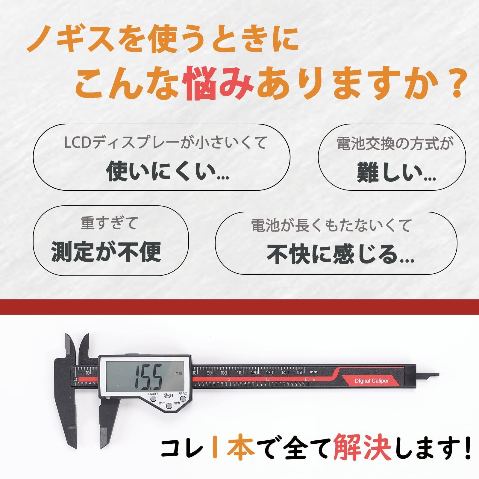 【包装内容】150mmデジタルノギス、LR44電池×3、収納ケース、 日本語説明書。耐久性ステンレスを採用しており、耐衝撃性と防水性に優れています。製品の表面は傷がつきにくいです。