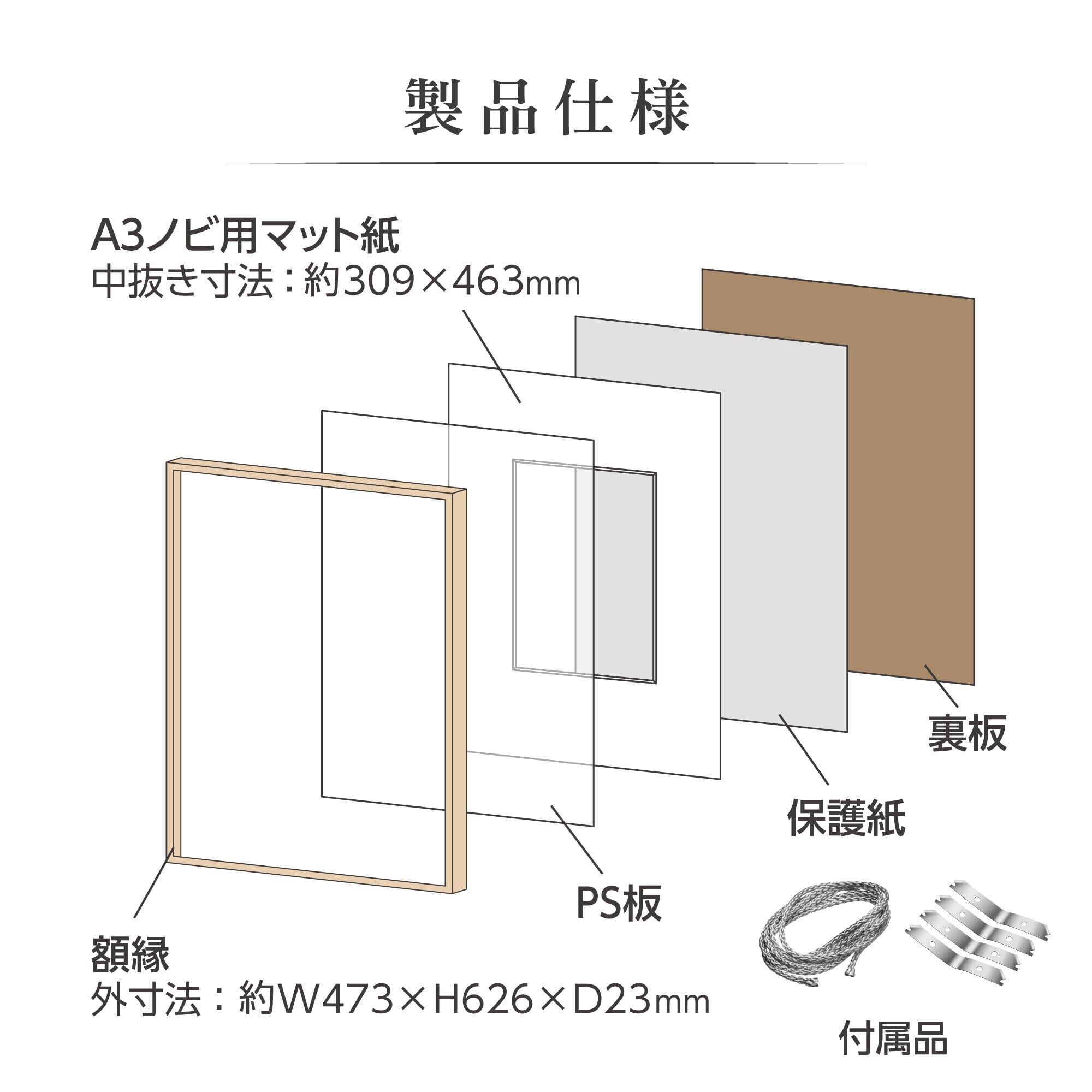 額縁外寸法:W473×H626×D23mm、マット外寸法:W463×H617×D2mm