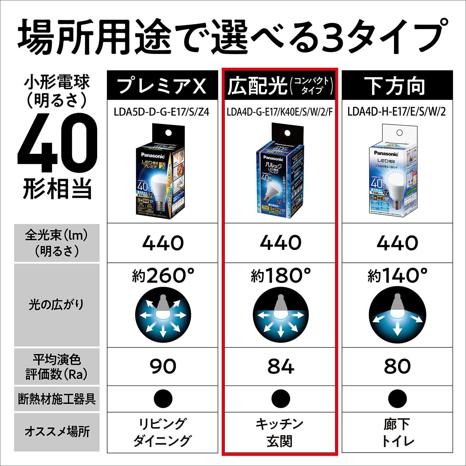 パナソニック ミニクリプトン型 LED電球 プレミア E17口金 電球40形相当 2個入 昼光色相当(3.9W) 小形電球広配光タイプ 密閉器具対応 LDA4DGE17K4ESW2F2T