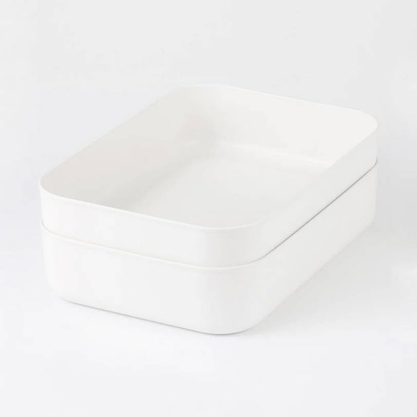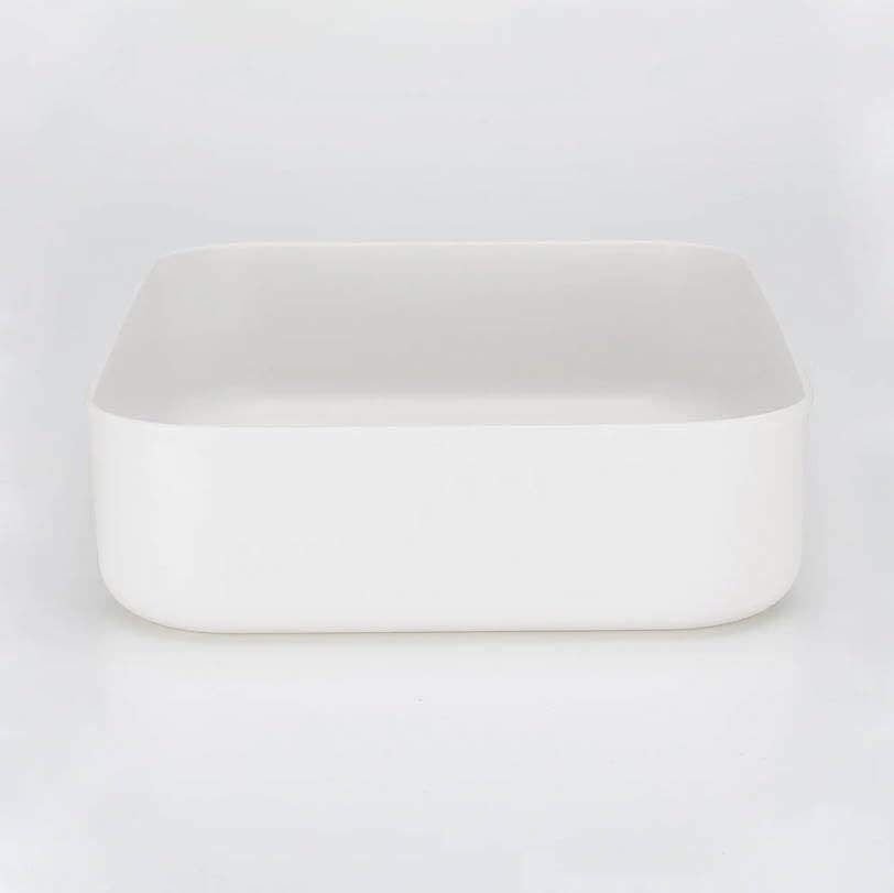 柔らかい素材のポリエチレンを使用しています。別売りのフタを使用することでスタッキングできます。積み重ね可能段数:2段
