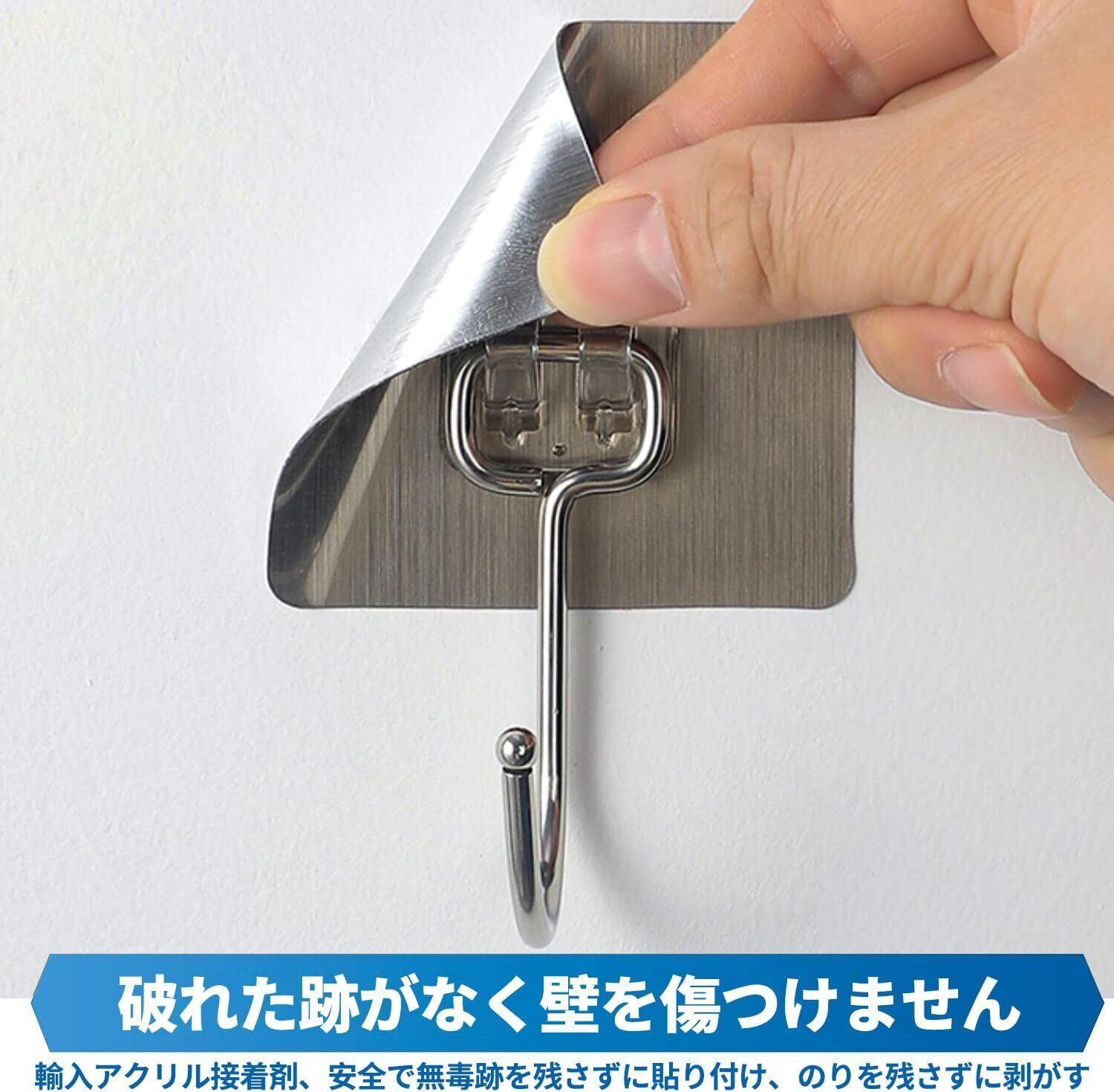 【数量限定】壁掛けフック 12枚セット 耐荷重20KG 粘着 強力 壁穴あけないフック 防湿 錆びない 強力フック 壁フック 穴開けない 傷つけない 貼り付け跡なし 防水 防湿(金属) (ぎんいろ 銀色 です), CT-12