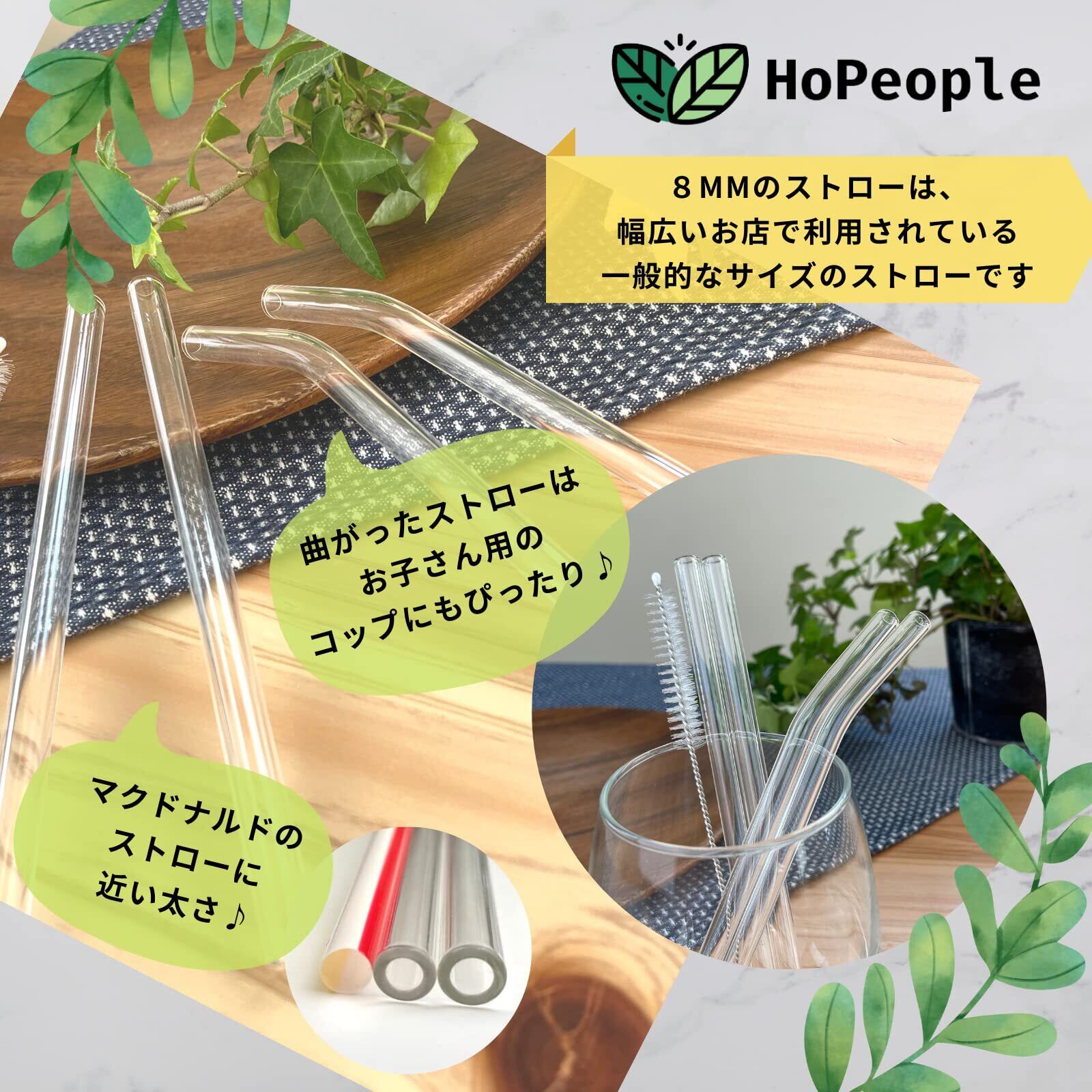 HoPeople ガラスストロー マイストロー 食品衛生検査適合品 4本セット ブラシ付き ガラス製 (ショート)