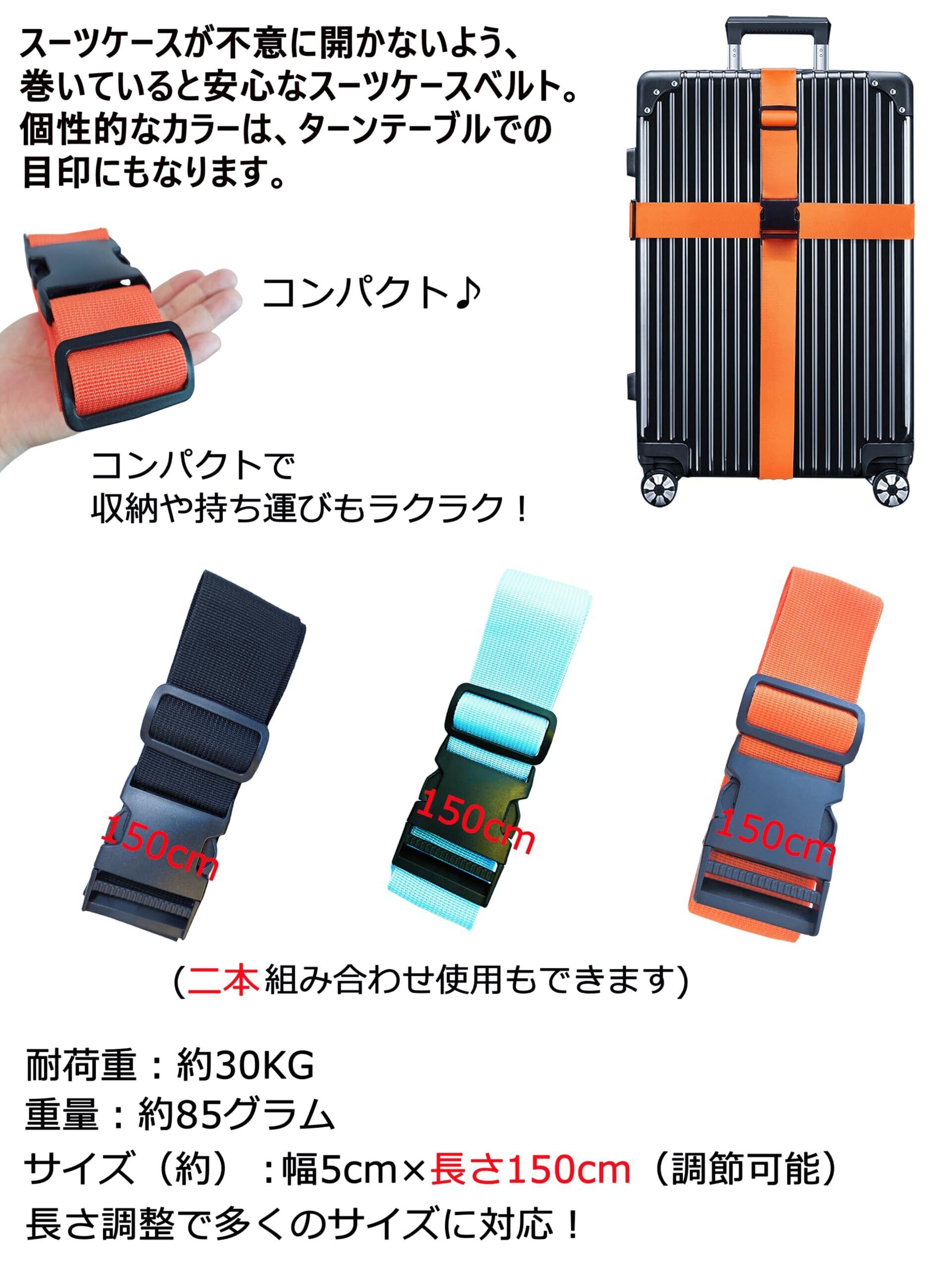 【サイズ】スーツケースバンド 1本の場合:幅5cm×長さ150cm(調節可能)。 2本セットの場合:幅5cm×長さ120cm(調節可能),幅5cm×長さ150cm(調節可能)