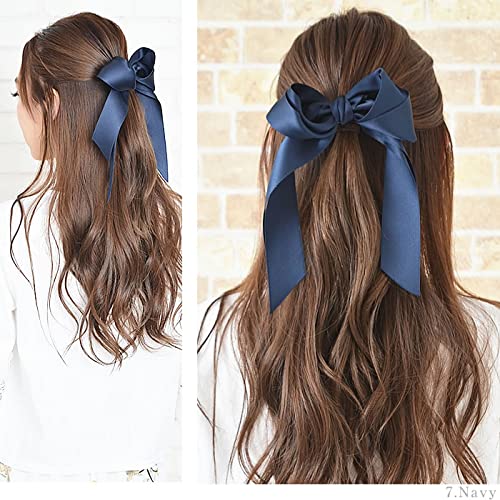 【新着商品】リボン ポニーフック 大きめ レディース ロングサテン 結婚式 かわいい ヘアアクセサリー 11.ブルー
