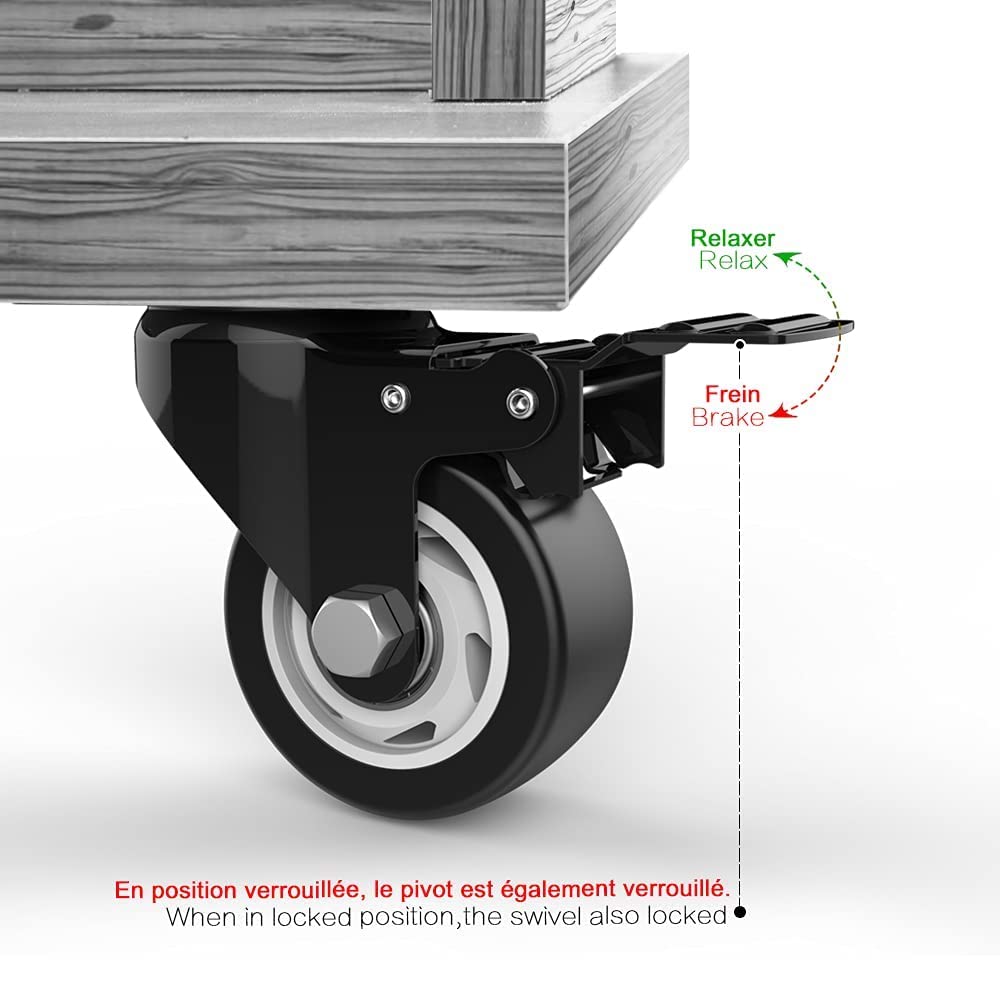Homhoo 3インチ キャスター 車輪 ブレーキ付き 高耐久性 単個耐荷重约 113.4kg 360度回転 静音 4個セット ミュートシリーズDIY家具交換キット ホイール径76mm
