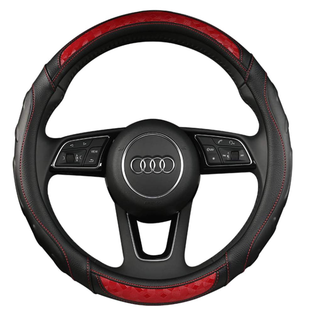 TATACLEA カーボンファイバー 車用ハンドルカバー、ステアリングホイールカバー、ハンドルカバー、ラウンドステアリングインテリアパーツサ38cm、快適、スタイリッシュ、耐久性、滑り止め、3Dテクスチャデザイン(レッド)
