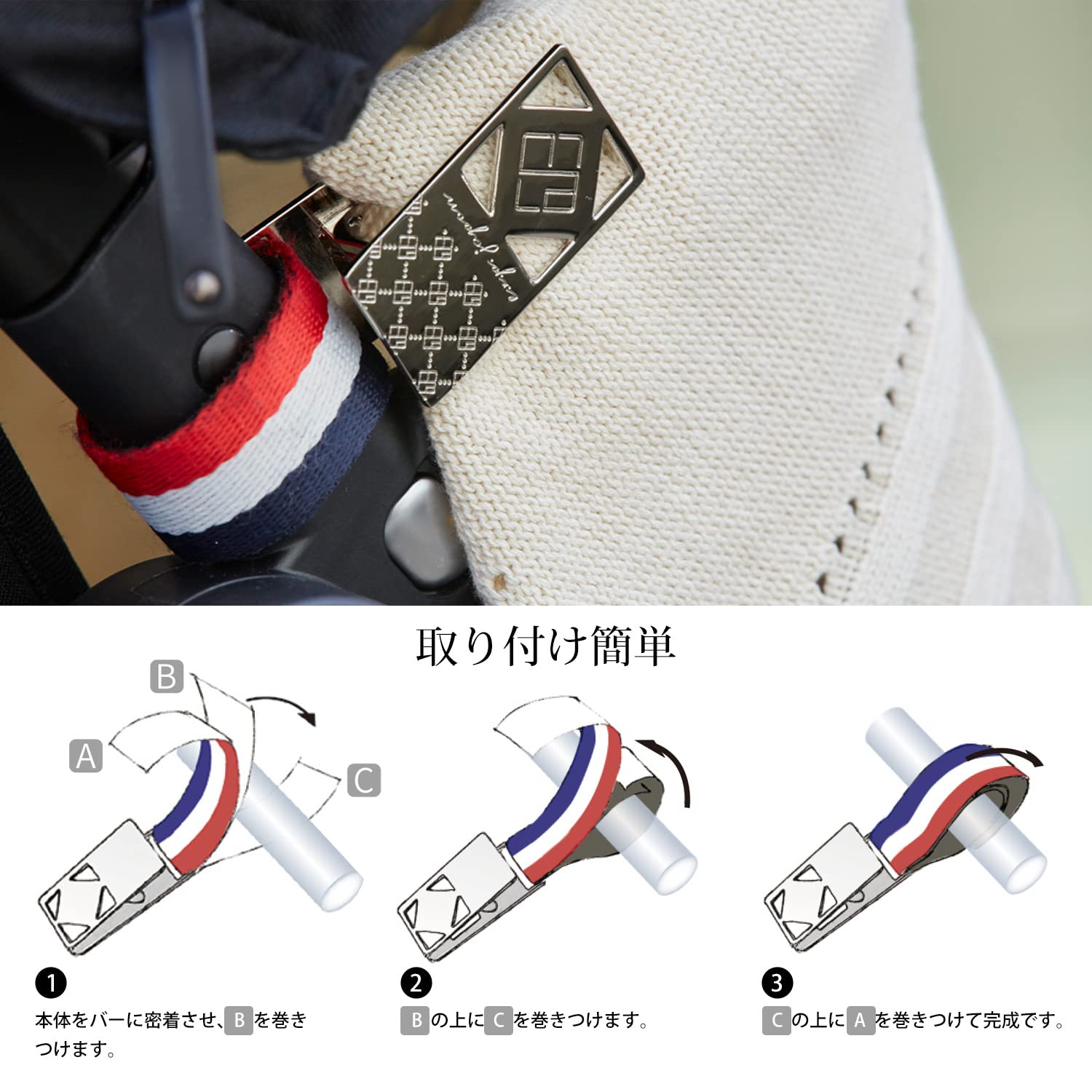 プラスチック製は壊れやすいかも…。ベビーカーにオシャレなものを付けたいなぁ… そんなママの要望から高級感のあるユニセックスなデザインで、パパにもおススメなブランケットクリップがついにリリース! ベビーカーに取り付けて、夏場の紫外線対策のタオルケットや冬場の防寒対策のブランケット等のずり落ちを防止します。マジックテープで簡単に取り付けられるので、車内等の取っ手に付けて、タオルやオモチャなどのちょっとした小物留めにもGood。お子様に当たらないような長さにしておりますが、お子様は思わぬ動作をしますので、保護者の目の届くところでご使用下さい。ベルト部分を外せば、ストラップホールがあるので好きなアクセサリーやキーホルダーを付けるとオリジナルのブランケットクリップとしても楽しめます。