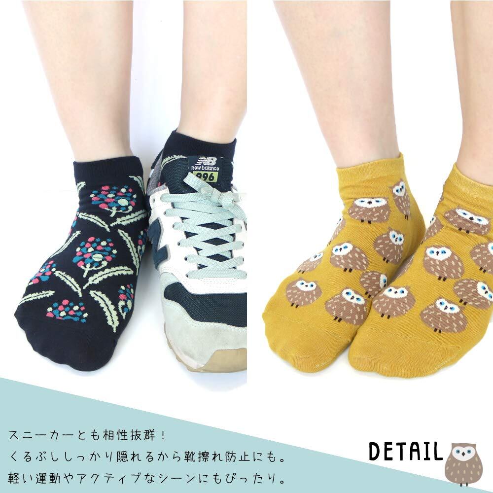 [box408] 靴下 レディース ショート丈 北欧 フロントデザイン 10足セット 23-25cm