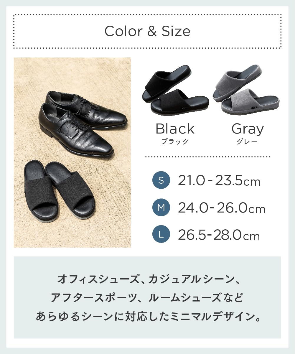 【サイズ、カラー展開】 サイズ:S(21-23cm)、M(23.5-25.5cm)、L(26-28.0cm) / カラー:ブラック・グレー(男女兼用)