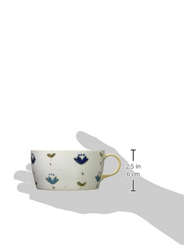 浜陶 波佐見焼 一誠窯 スイートフラワー ハンドル ボウル ブルー 400827 450ml