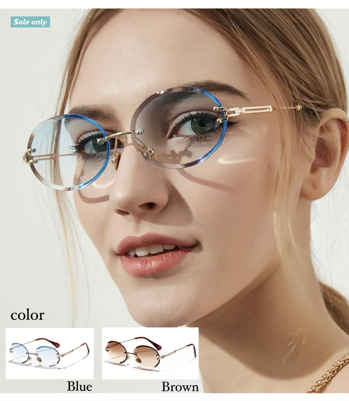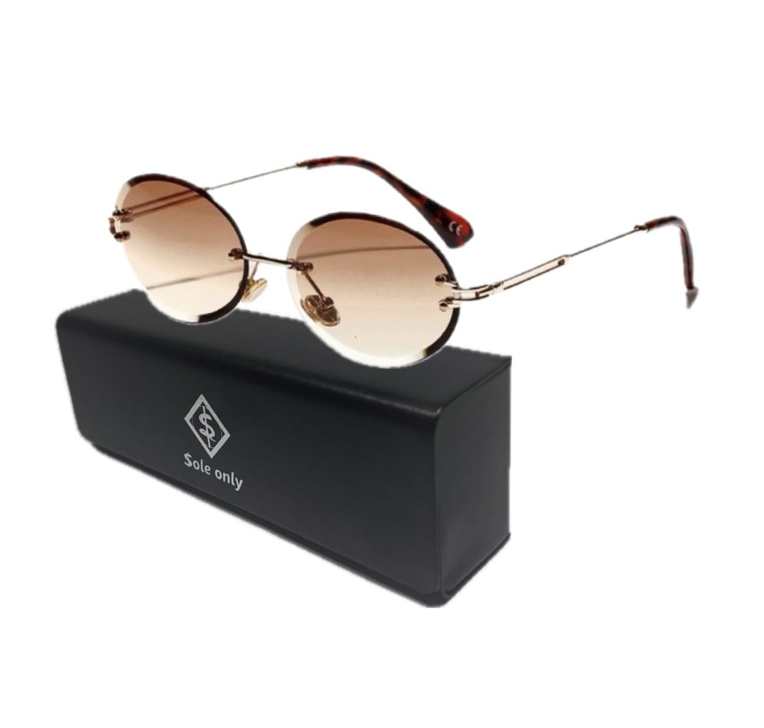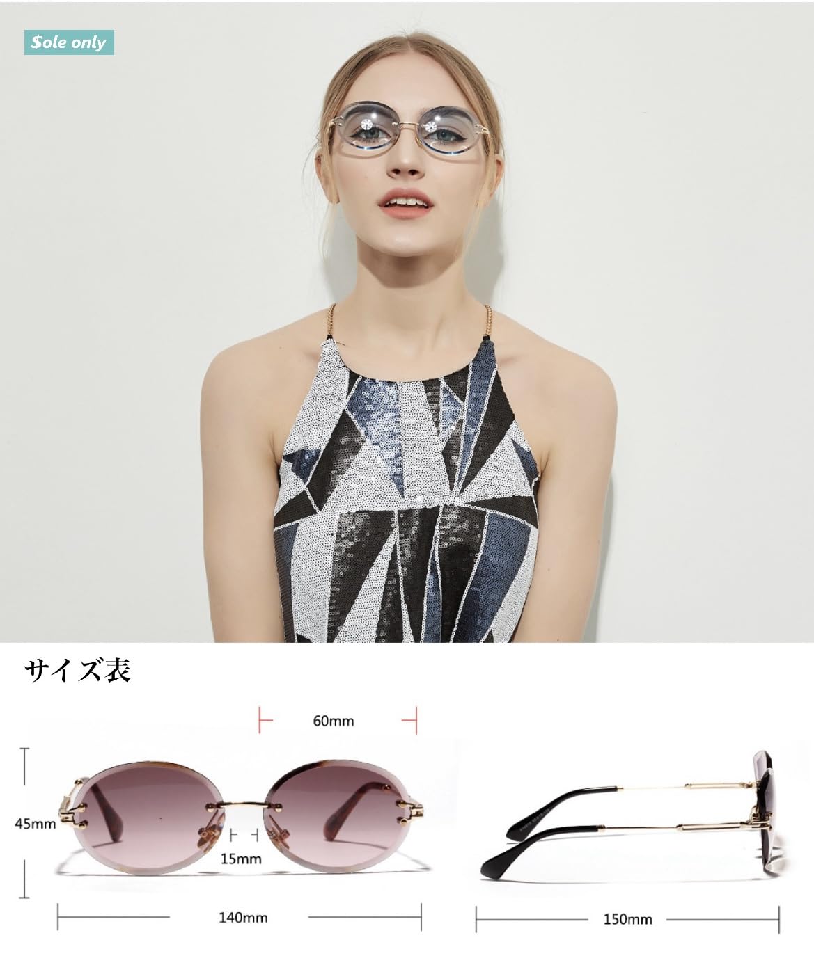 【新着商品】[$ole only] ソールオンリー サングラス オーバル リムレス レトロ UV400 おしゃれ トレンド アイウエア 見やすい ドライブ 運転用 逆光 サングラスケース付き ファッション メンズ レディース