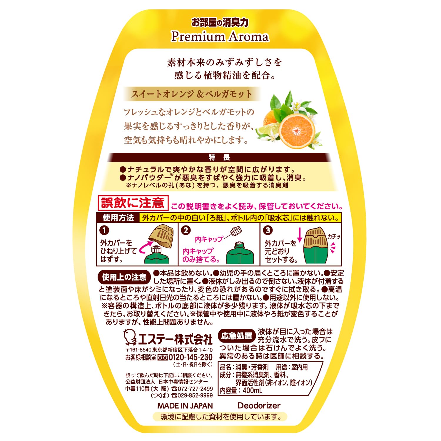 消臭力 プレミアムアロマ [まとめ買い] 部屋用 置き型 スイートオレンジ&ベルガモット 400mL×3個 お部屋の消臭力 玄関 リビング 寝室 ルームフレグランス 消臭剤 消臭 芳香剤