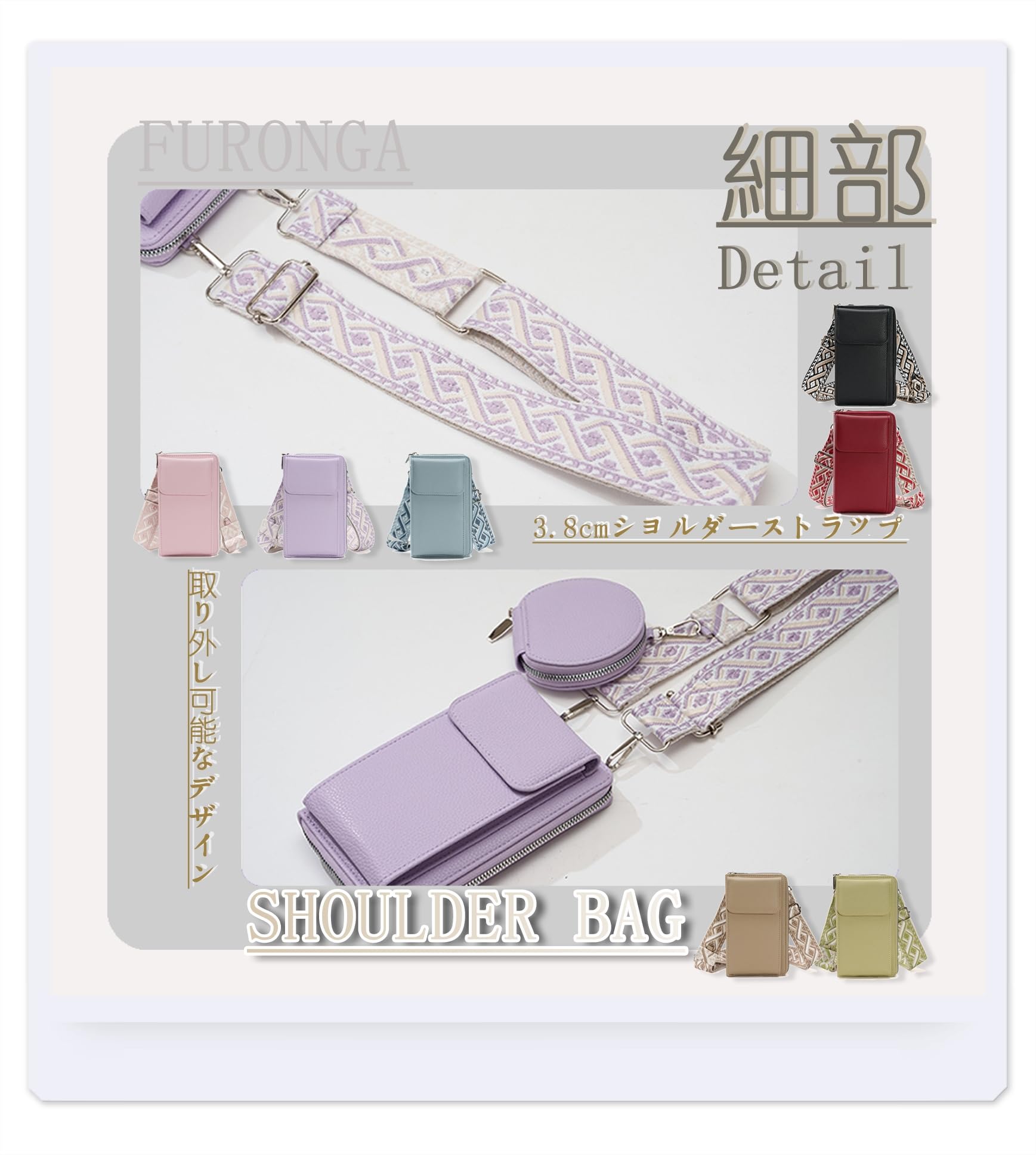 【在庫セール】[FURONGA] スマホショルダー レディース ショルダーバッグ コインケース 小さめ 軽量 財布 シンプル スマホポーチ 斜めがけ 携帯ポーチ 人気 可愛い おしゃれ 手提げ 薄い ミニ 3way 肩にかけ バッグ PUレザー ショルダー ポシェット