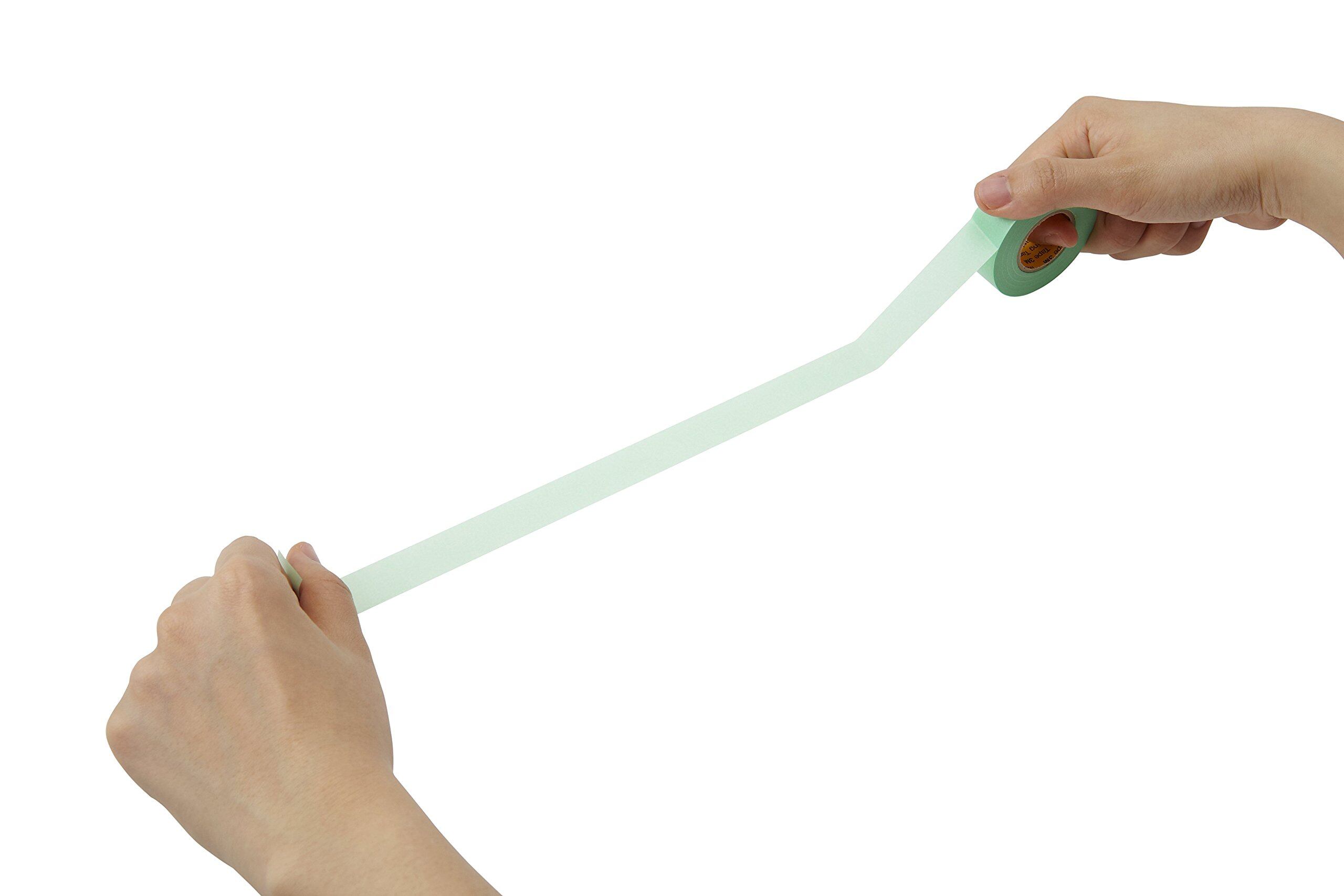 ・幅15mm×長さ18m×厚み0.09mm・色:若草色・粘着力:1.8N/10mm・引張強度:35.0N/10mm