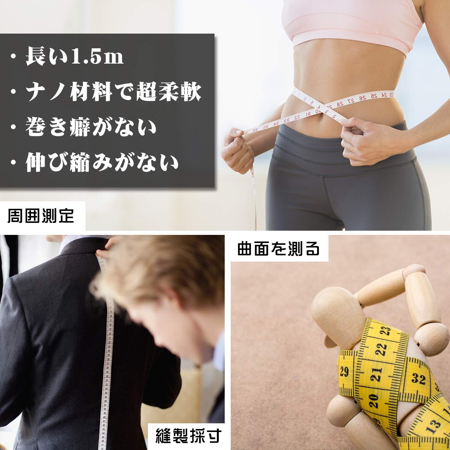 縫製、テーラリング、インテリアデザインなどの工芸品に不可欠なツールです。 直線またはエッジを持たない布またはアイテムの測定に役立ちます。 人体の曲線にもフィットするので身体のサイズを測る時にも重宝します。首からぶら下げられるストラップ付き。