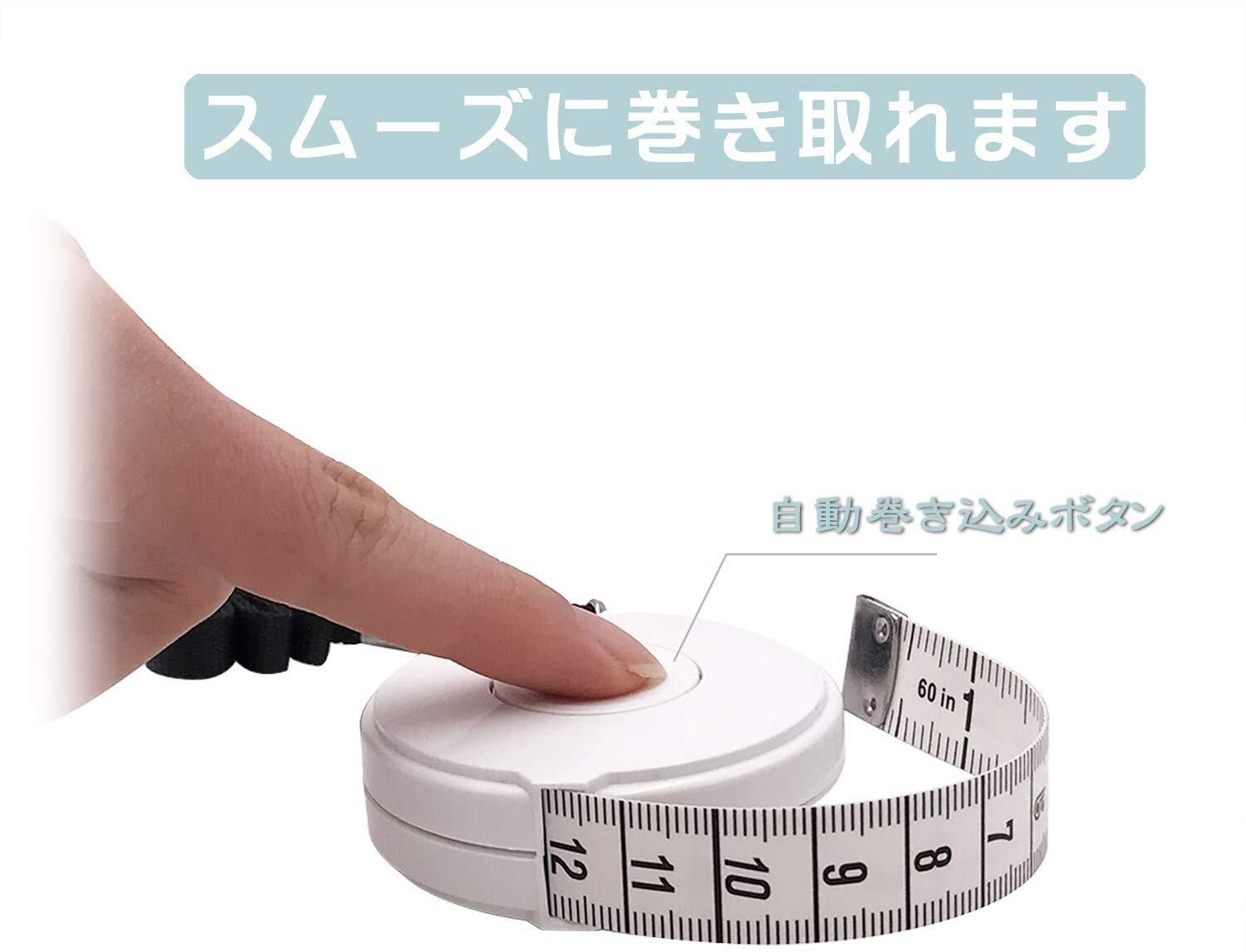 自動巻き取り式メジャー、ボタンを押してスムーズに巻き取ることができます。