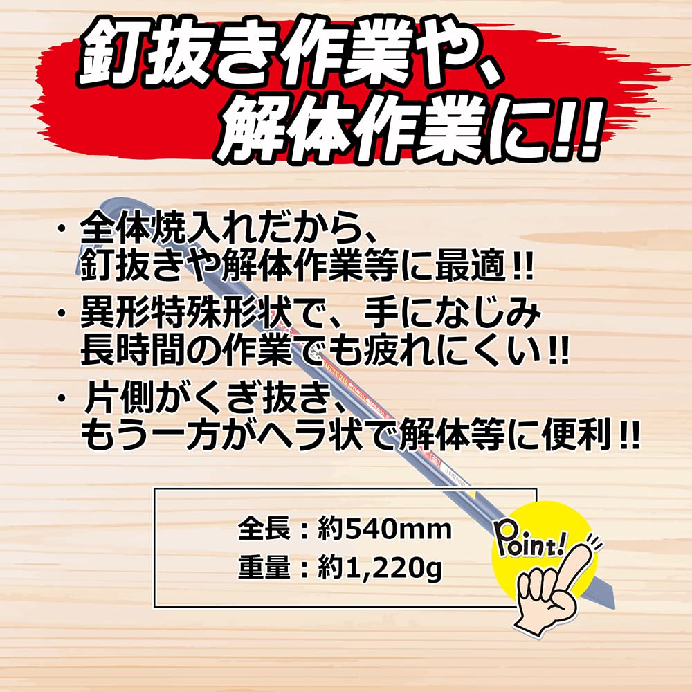 ・全体焼入れのため釘抜き作業、解体作業等に最適