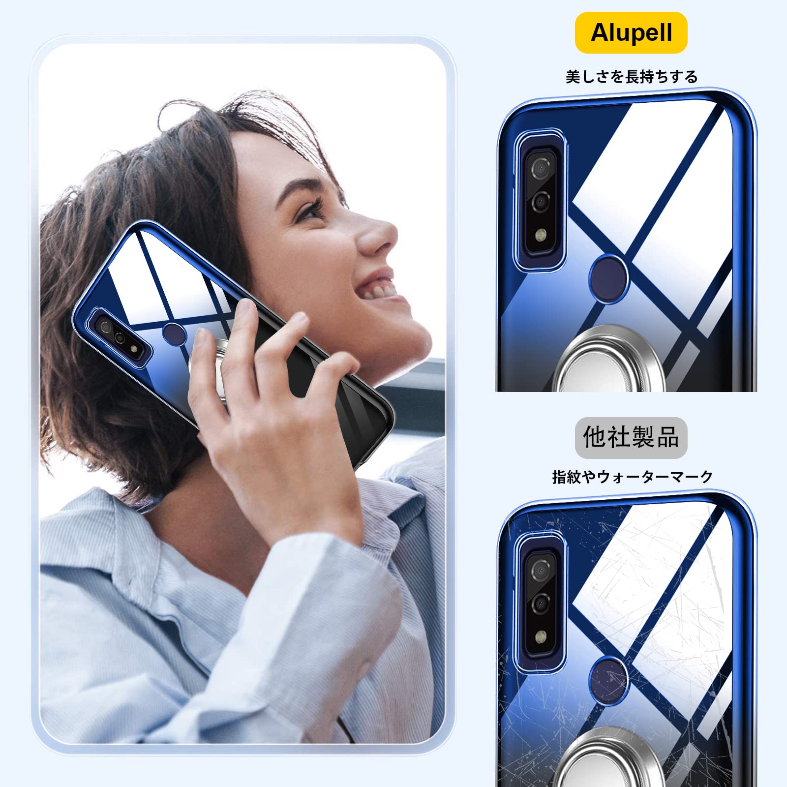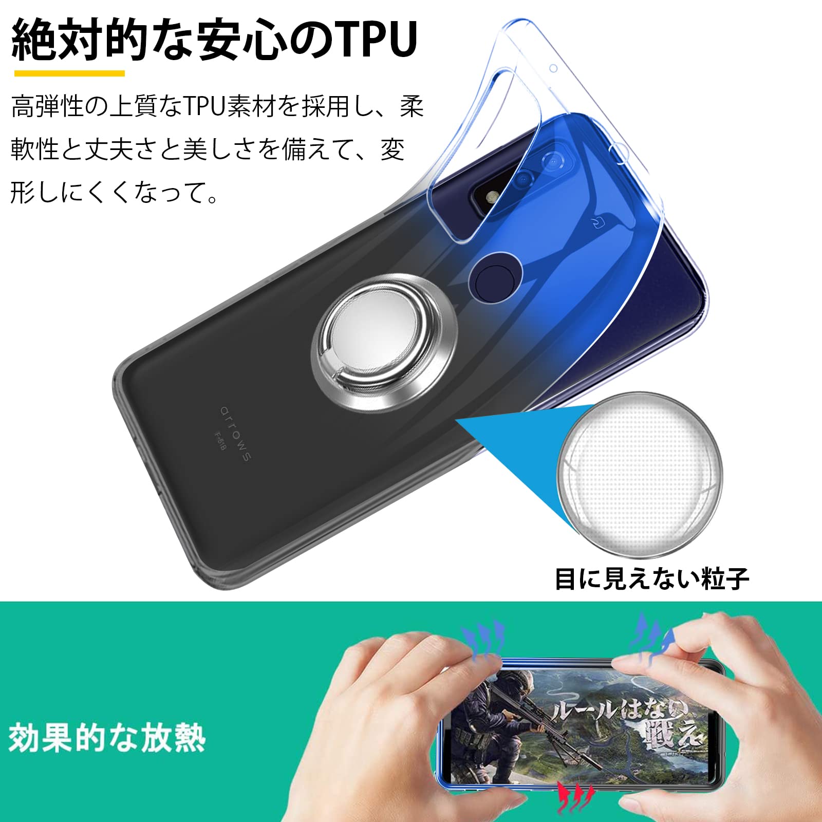 arrows We F-51B ケース リング 透明 tpu 薄型 軽量 FCG01 カバー シリコン グラデーション色 ケース 耐衝撃 指紋防止 車載ホルダー対応 防塵 一体型 人気 携帯カバー ブルーブラック
