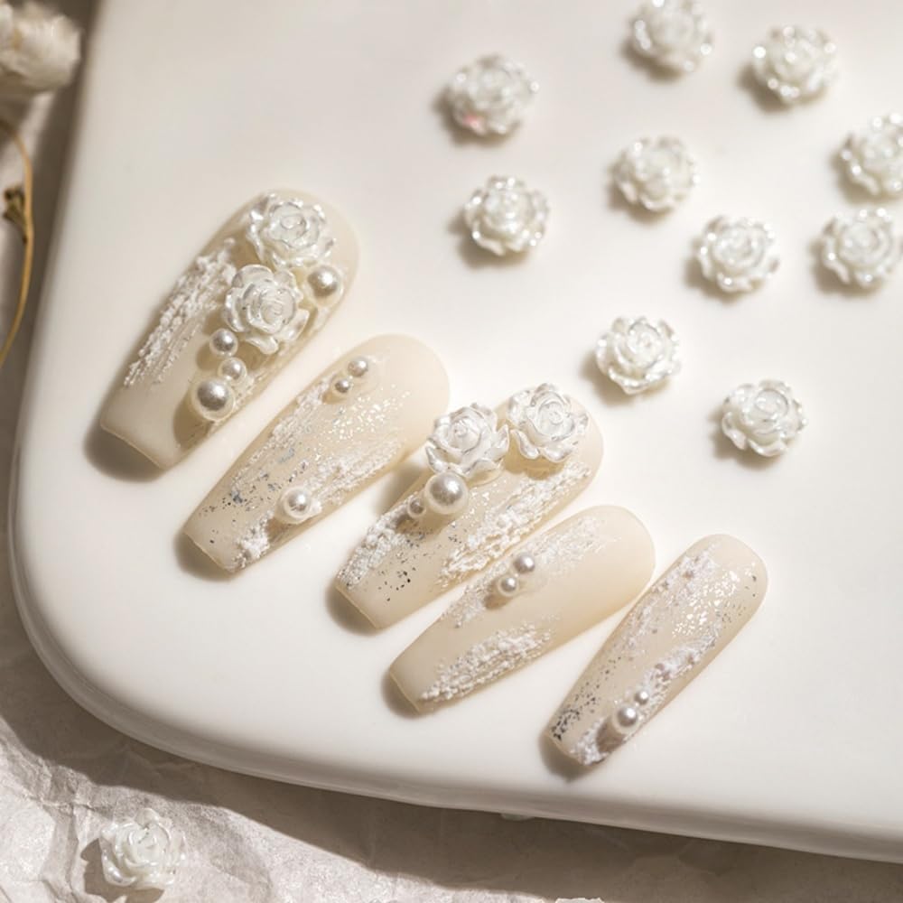 立体的なローズパーツ:シンプルで可愛いローズモチーフのネイルパーツです。パール風で光沢があります。ネイルに乗せるだけでおしゃれなアクセントになります。