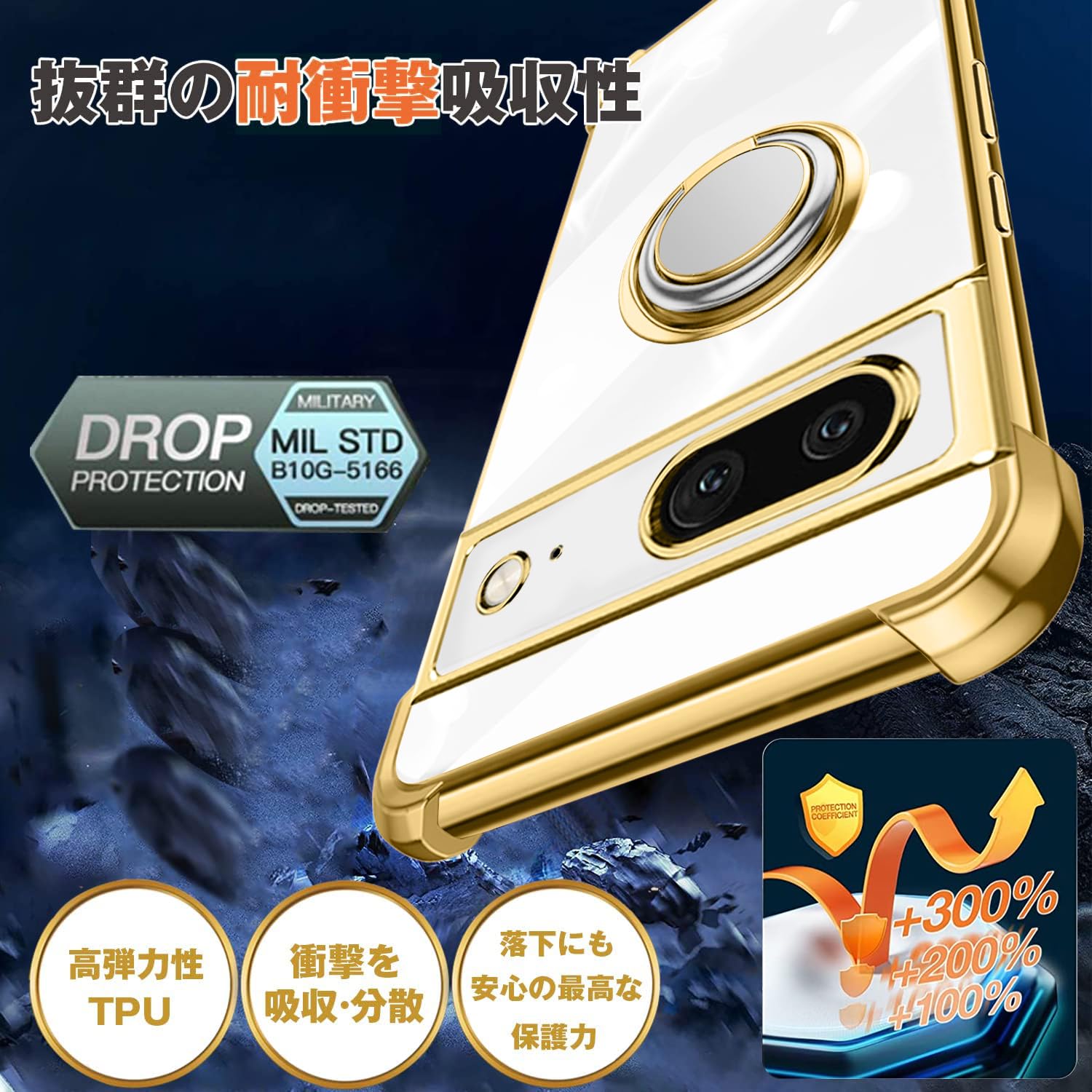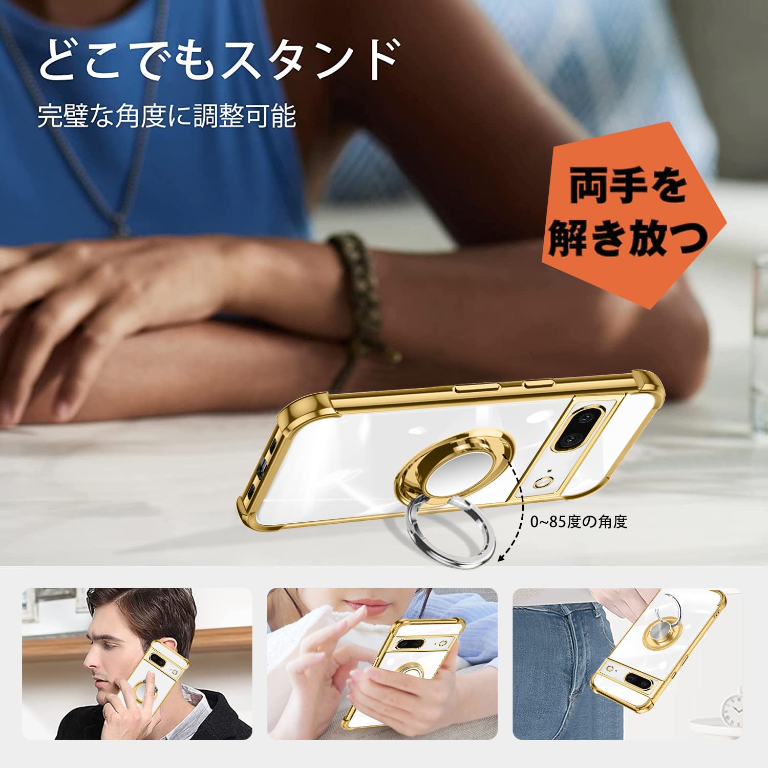 【数量限定】nahailun Google pixel 8 ケース クリア リング付き 耐衝撃 グーグル ピクセル 8 スマホケース ピクセル 8 ケース pixel8 ケース Google Pixel 8 5G カバー 柔軟 軽量TPU 透明 薄型 レンズ保護スマホ 落下防止 滑り止め、すり傷防止 360°回転 スタンド機能 車載ホルダー対応(ゴールド)