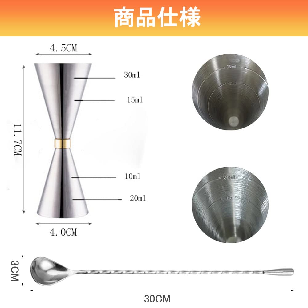 【在庫セール】DFsucces 30ml/45mlジガーカップ 目盛り付き ステンレス鋼 計量カップ ットバーテンダー バー用品 カクテル メジャーカップ ウイスキー 計量用 バースプーン付 (2点セット)