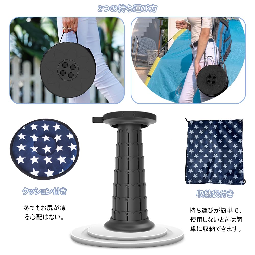 BTtime 折りたたみ椅子 おりたたみいす 折り畳み椅 子 キャンプ椅 子 伸縮式 キャンプスツール 高さは9-52cmまで調整可能 1秒開閉 耐荷重180kg 軽量 コンパクト 持ち運び便利 ハイキング/アウトドア キャンプ/釣り/BBQ/踏み台/運動会/花火大会/屋内用 (ブラック)