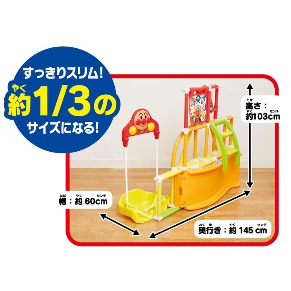 ●ブランコ、ジャングルジム、すべり台、鉄棒の4WAYで長く遊べる! ●すべり台が長くゆるやかなカーブがついているので楽しい! ●遊びながら判断力・想像力・好奇心・脳の活性・反応能力・手先の器用さ・バランス感覚・柔軟性など12の能力を伸ばせます。●組み立てはパイプをパチっとはめるだけなので簡単、専用器具で取り外しも簡単です。●ジャングルジム・ブランコもカンタンに折りたたみができるので、収納やお片付けに便利です。●重量制限:25kg●対象年齢:2~5歳(C)やなせたかし/フレーベル館・TMS・NTV