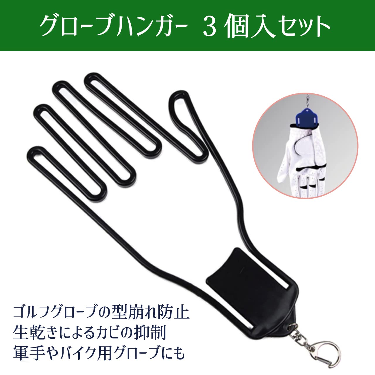 商品内容:ゴルフ用手袋 フック付き乾燥用ハンガー 3本セット