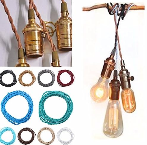 【新着商品】クインウィンド 5 m ヴィンテージ2コアツイスト編み布ケーブルワイヤー電気照明コード - コーヒー