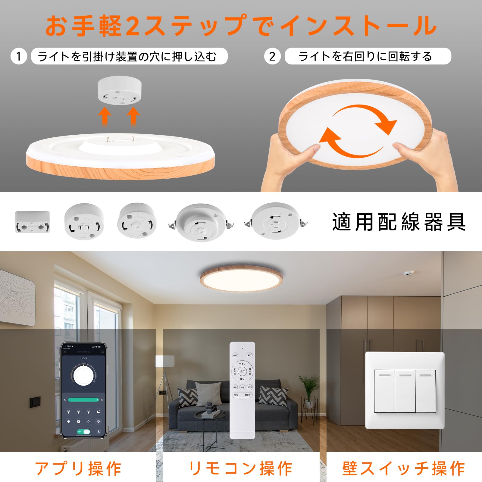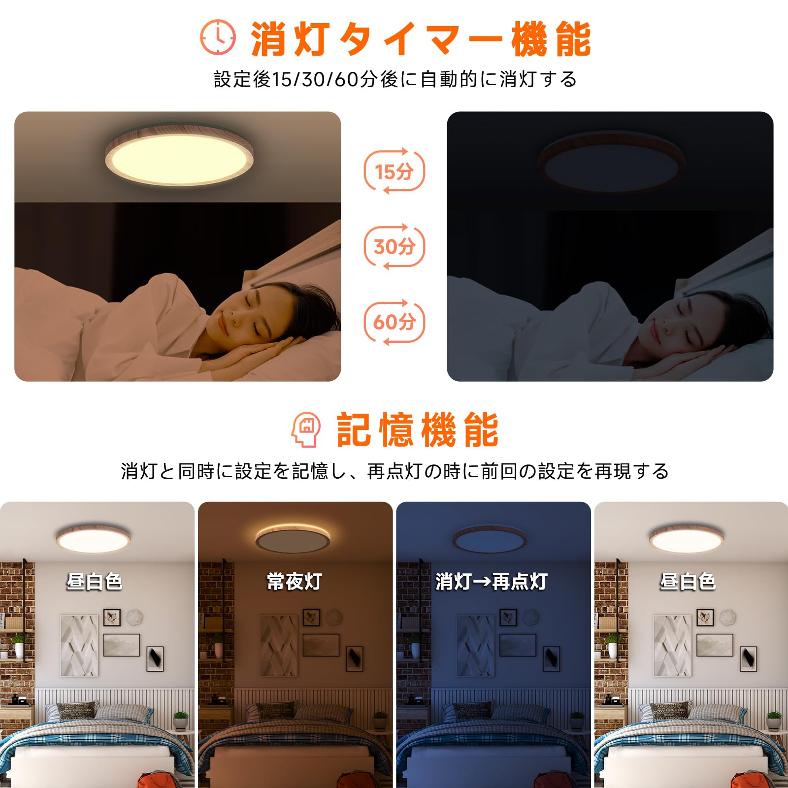 LEDシーリングライト6畳 27W 3600LMシーリング+ライト木目調 間接光-導光板 照明器具 常夜灯モード リモコン付 無段階調光調色 昼白色-昼光色-電球色 ledライトメモリスリープタイマー 玄関部屋 寝室 和室 台所 洗面所 天井 PSE認証獲得 日本語説明