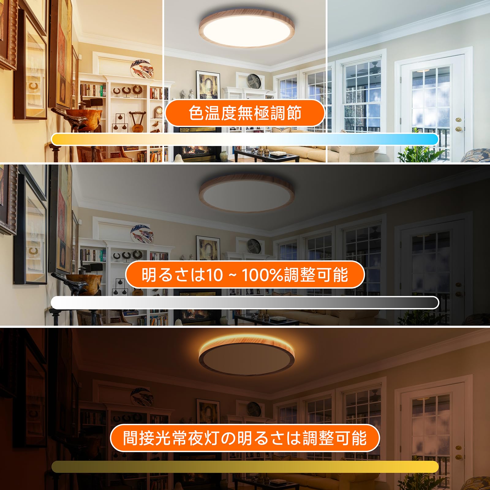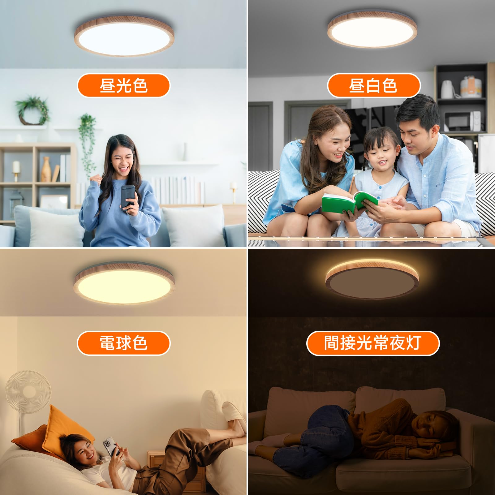 【新春セール】LEDシーリングライト6畳 27W 3600LMシーリング+ライト木目調 間接光-導光板 照明器具 常夜灯モード リモコン付 無段階調光調色 昼白色-昼光色-電球色 ledライトメモリスリープタイマー 玄関部屋 寝室 和室 台所 洗面所 天井 PSE認証獲得 日本語説明