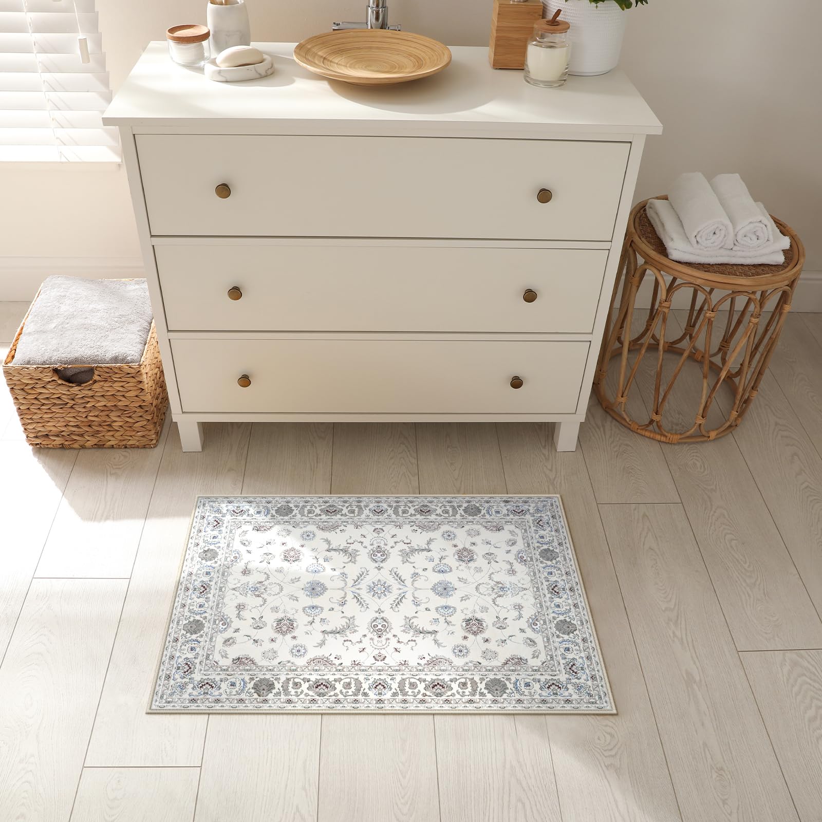 HAOCOO 玄関マット ペルシャ絨毯風 室内 夏用 50х80cm 小さい ラグ おしゃれ 洗える 耐磨耗性 滑り止め 防音 ラグマット 屋外 泥落とし シェニール オールシーズン適用 抗菌防臭 軽量 アイボリー