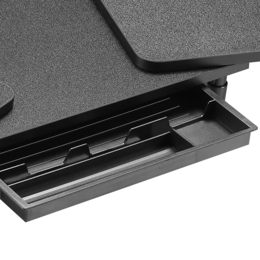 【収納力抜群】 ◆棚板が3枚付いており、キーボードやマウスなどの周辺機器、オフィスファイル、タブレットなど様々なものを整頓でき、デスク上のスペースの有効活用して、デスクをもっと広々使う! ◆ペンケースが付き、デスクトップスペースを充実させ、煩雑さを減らす。