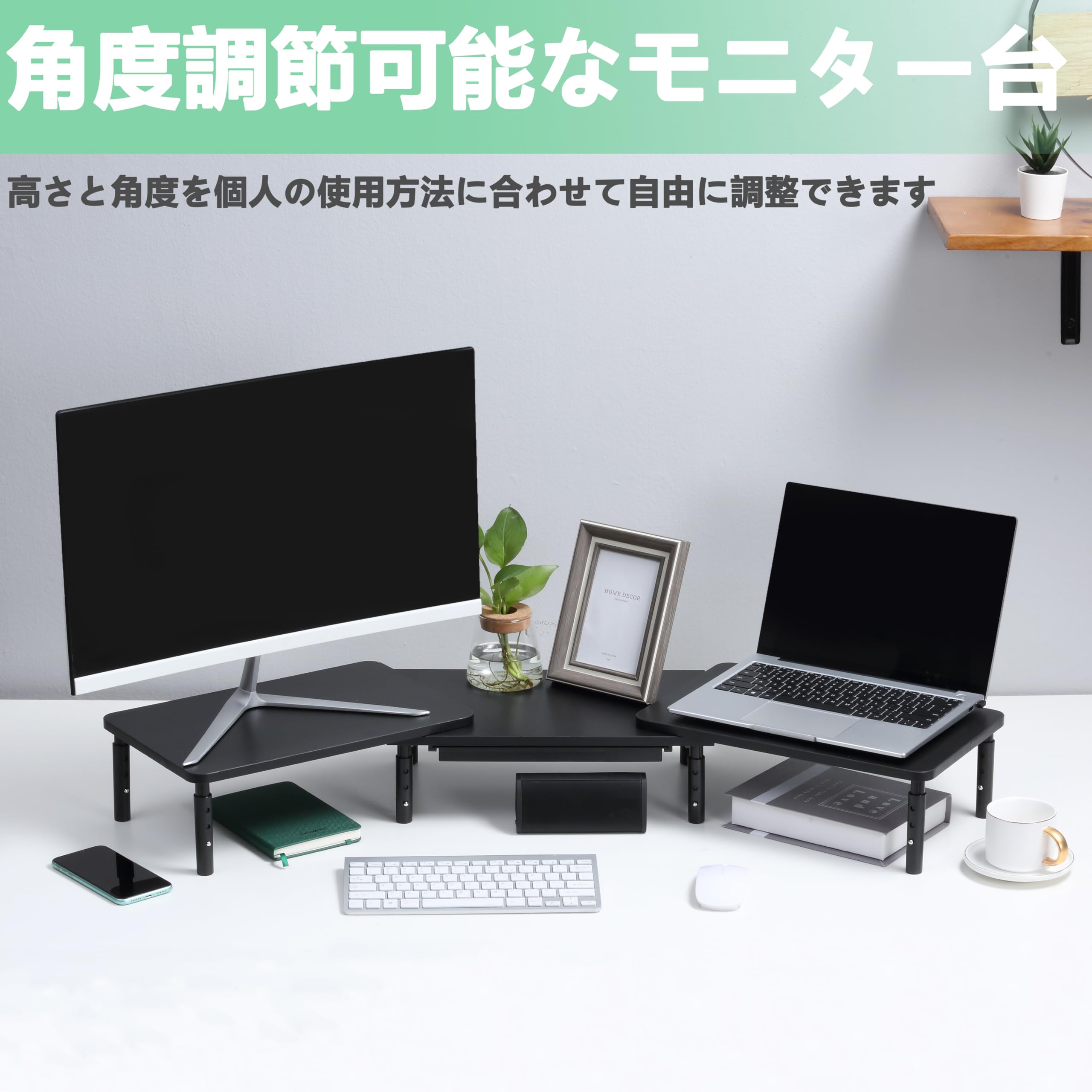 【数量限定】ETHU モニター台 デュアルモニタースタンド 机上台 幅109cm 2台モニター対応 角度調整可能 (黒)