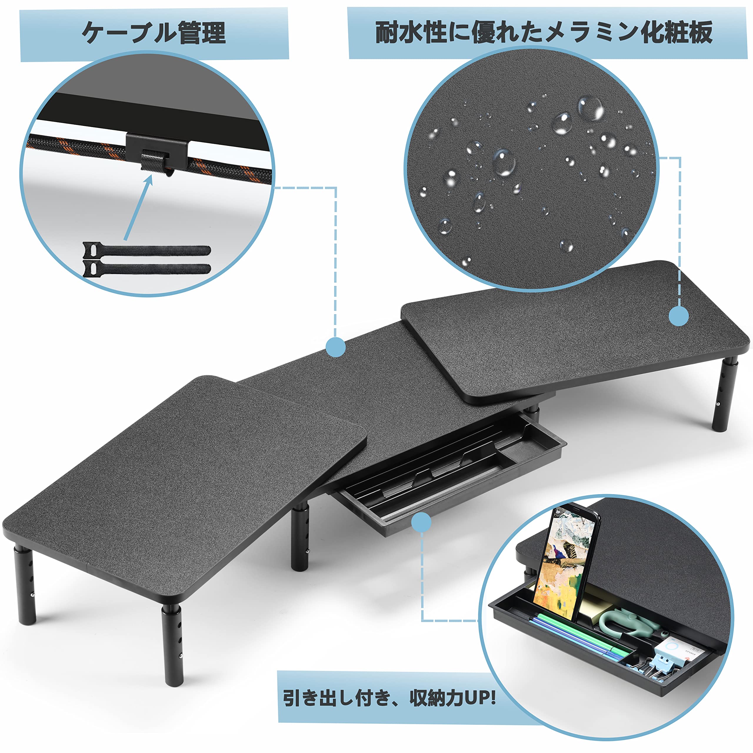 ETHU モニター台 デュアルモニタースタンド 机上台 幅109cm 2台モニター対応 角度調整可能 (黒)