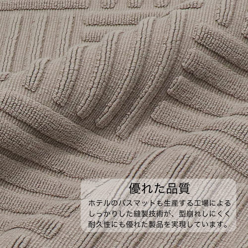 【耐久性】ホテルのバスマットも生産する工場だから出せる生地感としっかりした縫製技術が、高密度で型崩れしにくく耐久性にも優れた製品を実現しています。