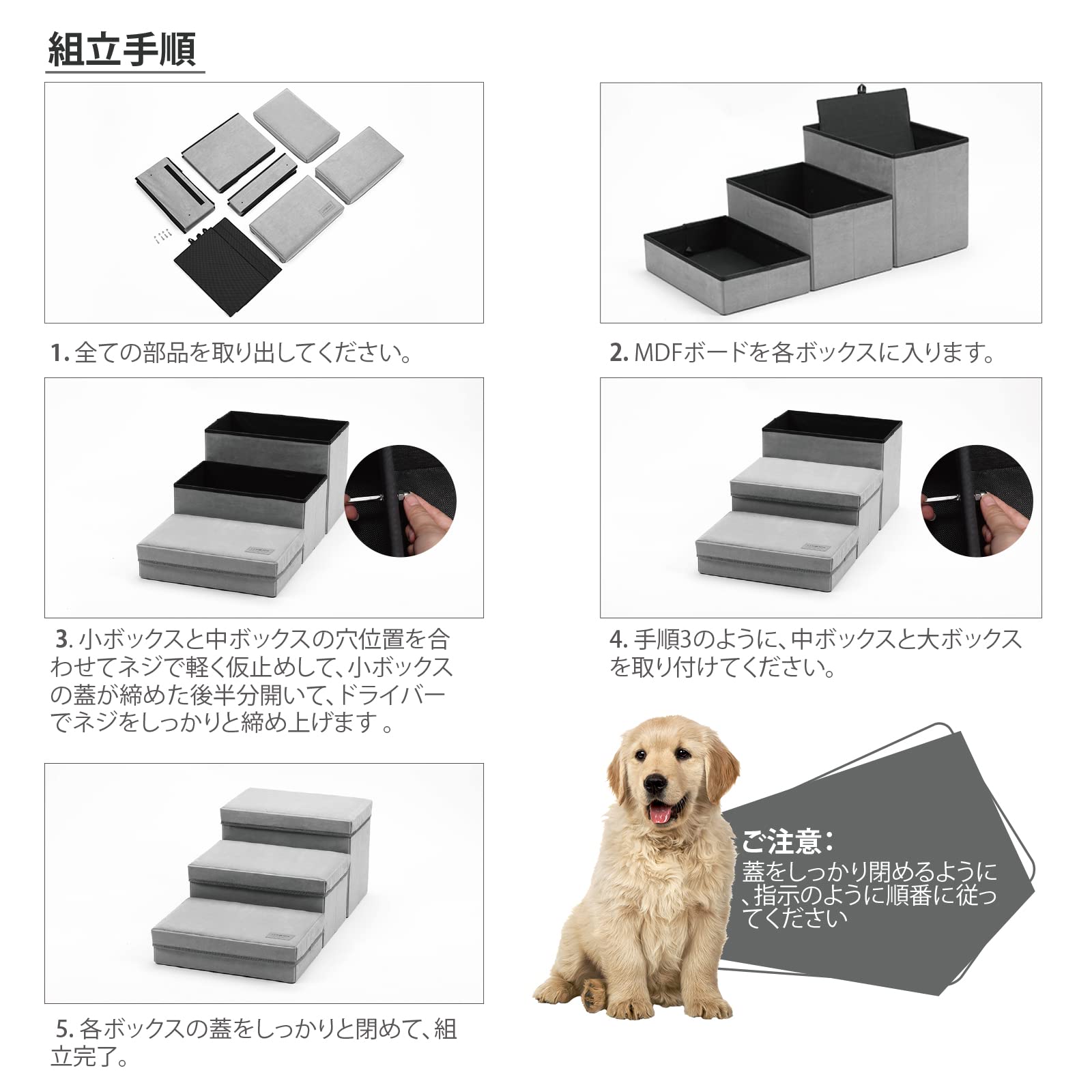 ドッグステップ 3段 犬 ペット用階段 踏み台 収納型ペットステップ 耐荷重20KG 足腰への負担を軽減 怪我防止 安全 小型犬 ヘルニア 高齢犬 シニア犬 収納ボックス 組立ペットステップ 介護用品