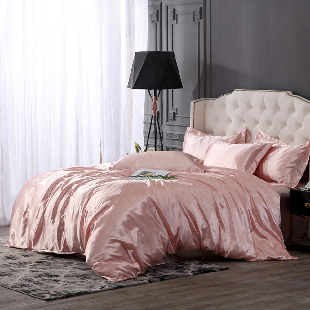 (コズミックツリー) COSMIC TREE 光沢 シルク 調 レーヨン しっとり 夏は涼しく冬は保温 ボックス ベット シーツ 布団カバー 枕カバー セット 選べる シングル ダブル (ダブル-ボックス パールピンク)