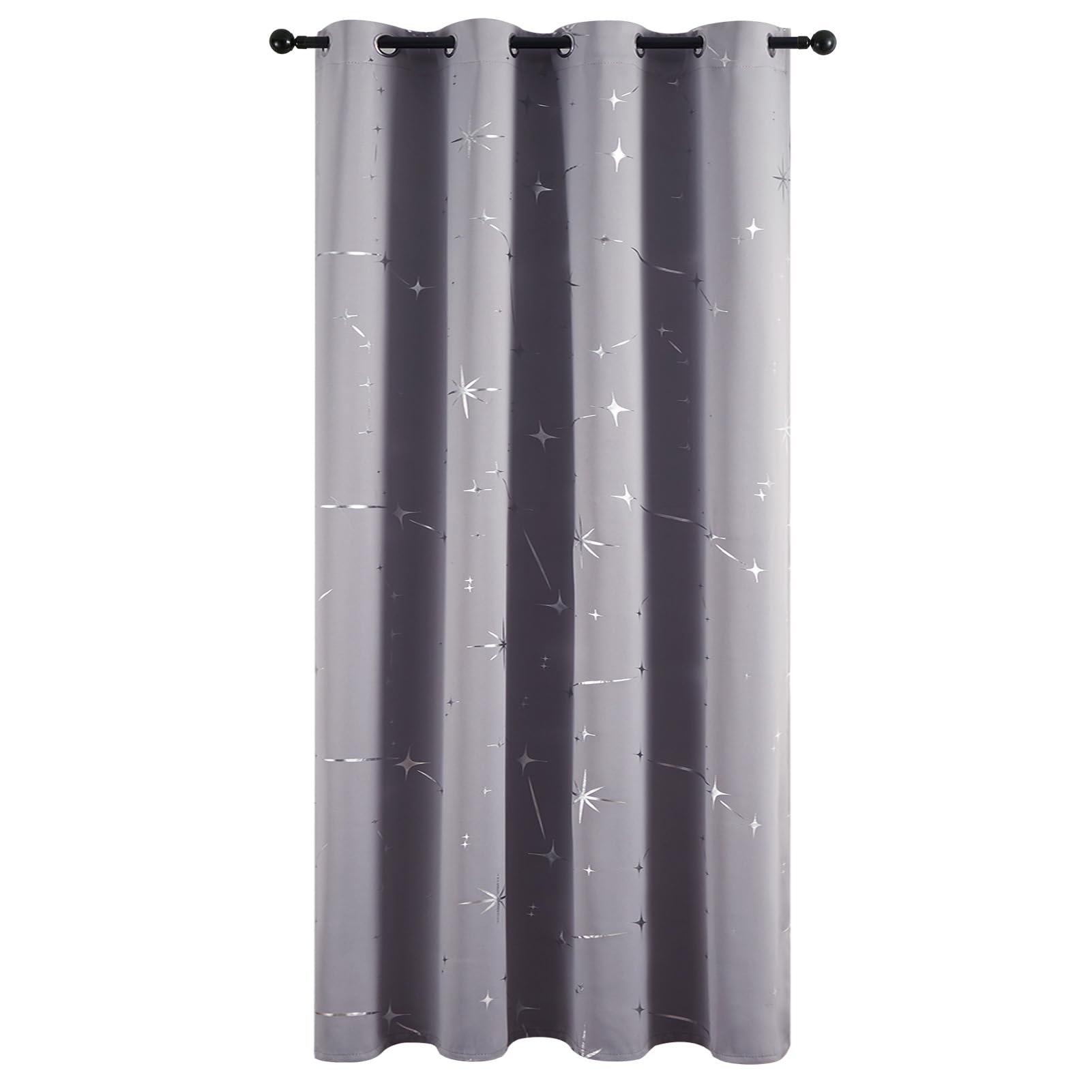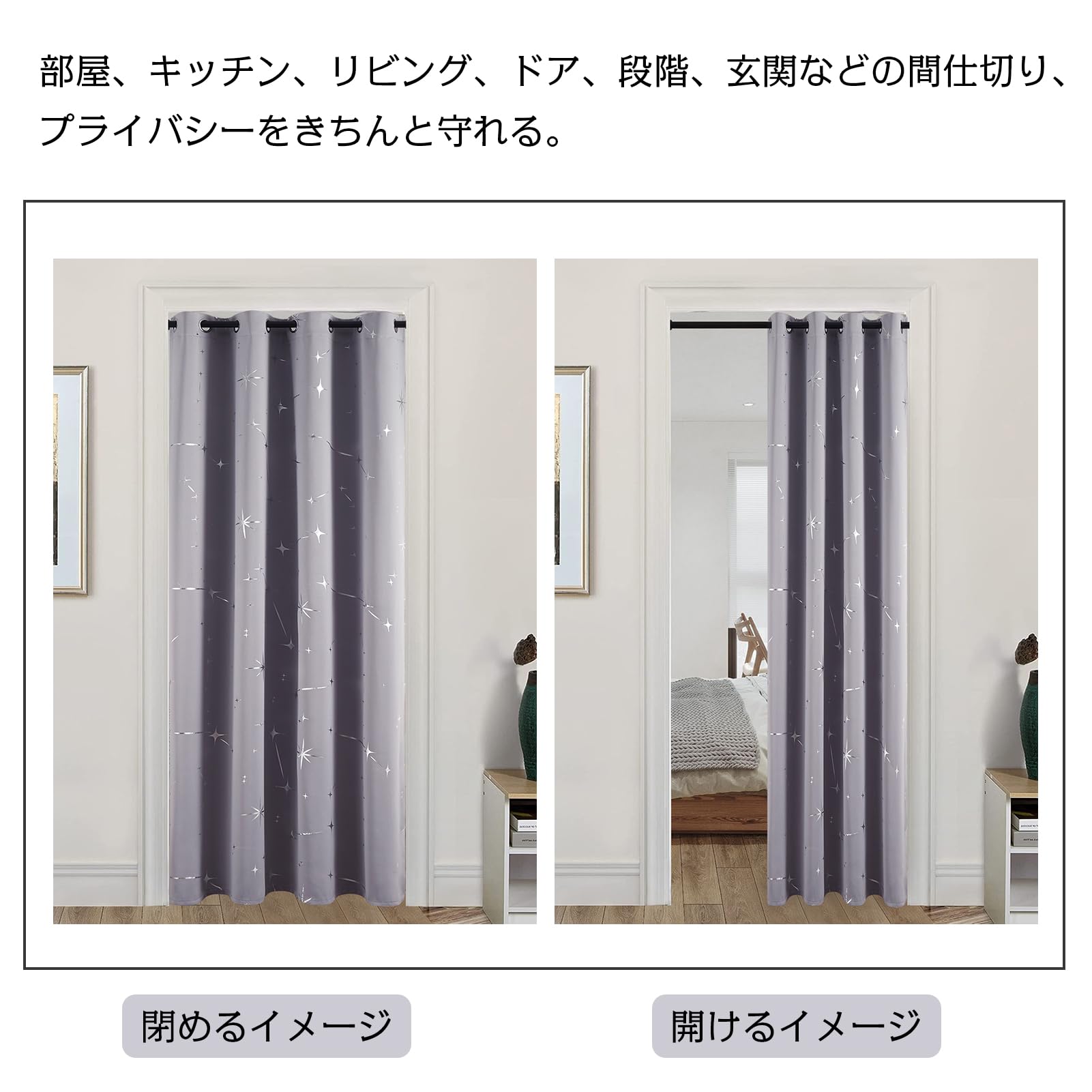 Topfinel のれん 間仕切りカーテン 断熱 カーテン 遮光 星柄 箔プリント 幅100cm 丈180cm 1枚入り グレー ハトメ型 突っ張り棒 カーテン 仕切りカーテン ドアカーテン 目隠し 玄関 キッチン リビング